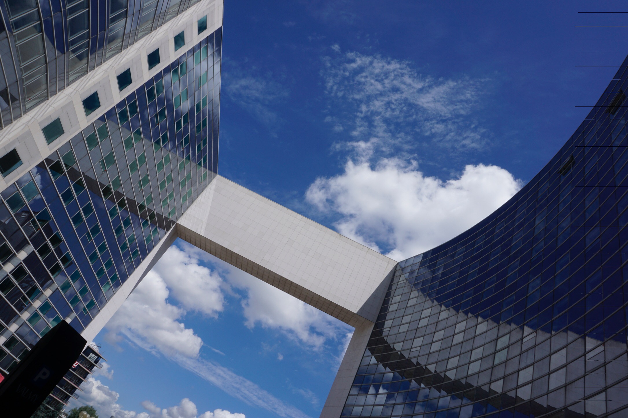 Was macht man nicht alles für einen an moderner Architektur interessierten Fotobegeisterten, der zum ersten Mal diese Stadt besucht? Nix wie hin zum Pariser Manhattan und dort acht Stunden lang bei 30 Grad – na was wohl – rumfotografiert. Was ihr hier seht, sind meine bescheidenen und unbearbeiteten Ergebnisse. Der Meister hält seine Werke noch unter Verschluss. Zwei Mal musste ich ihn vor den Security-Jungs retten. Ansonsten blieben wir zwar beäugt, aber unbehelligt. Ein toller Tag, und abends völlig erschöpft zurück zum Hotel. Gerade rechtzeitig zum Fußball 😀.