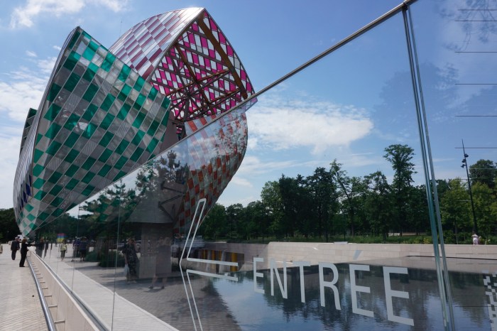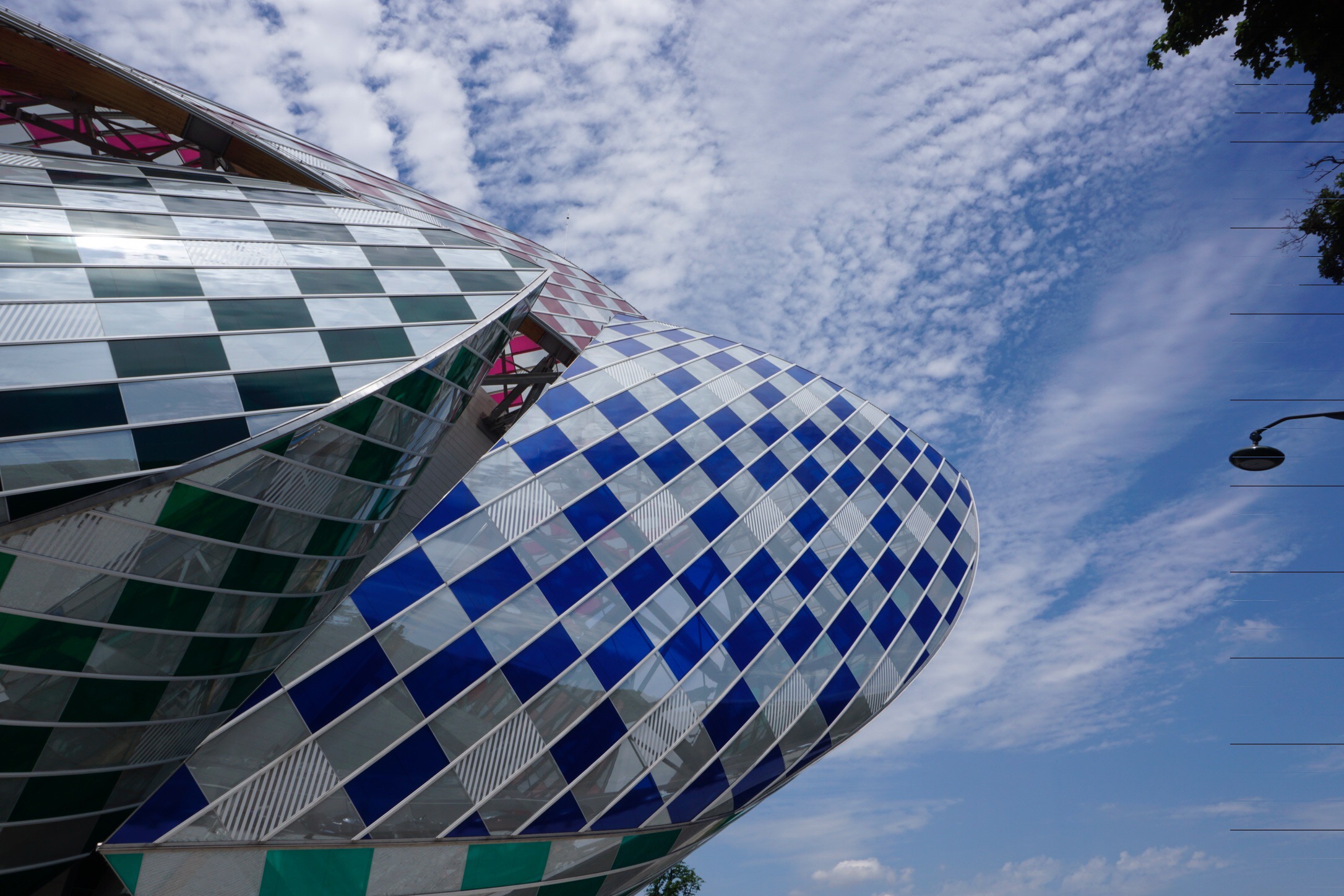 Heute legt das Thermometer noch einen drauf und lässt uns bei 32 Grad in drückender Schwüle braten. Aber schöne Wölkchen zieren den Himmel und garantieren hübsche Fotos. Also alles gut! Zuerst geht’s zum Wahrzeichen Nummer Eins. Seit den Anschlägen im letzten Jahr müssen erst ein paar Security-Hürden genommen werden, bevor man sich dem architektonischen Meisterwerk zu Füßen werfen darf. Da ist es doch bei meinem persönlichen Lieblingsbauwerk, der Fondatión Louis Vuitton, deutlich entspannter. Auch, was die Menschenmassen angeht … Frank Gehry hat sich hier ordentlich ausgetobt. Zur Zeit und auch noch während der nächsten Monate hat sich das Häuschen in bunte Schale geschmissen, wo sonst nur – durchsichtiges – Glas, Holz und Stahl zu sehen sind. Danach noch ordentlich gechilled im Jardin d‘ acclimatation und schwups ist schon wieder ein Tag rum.