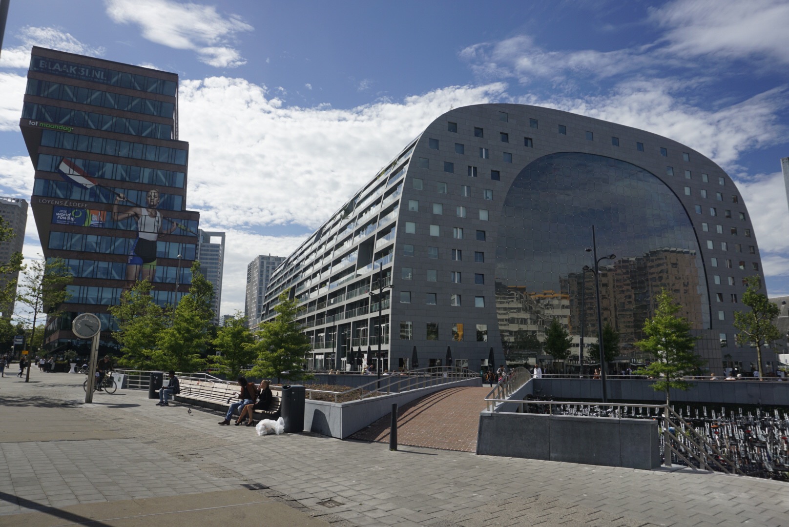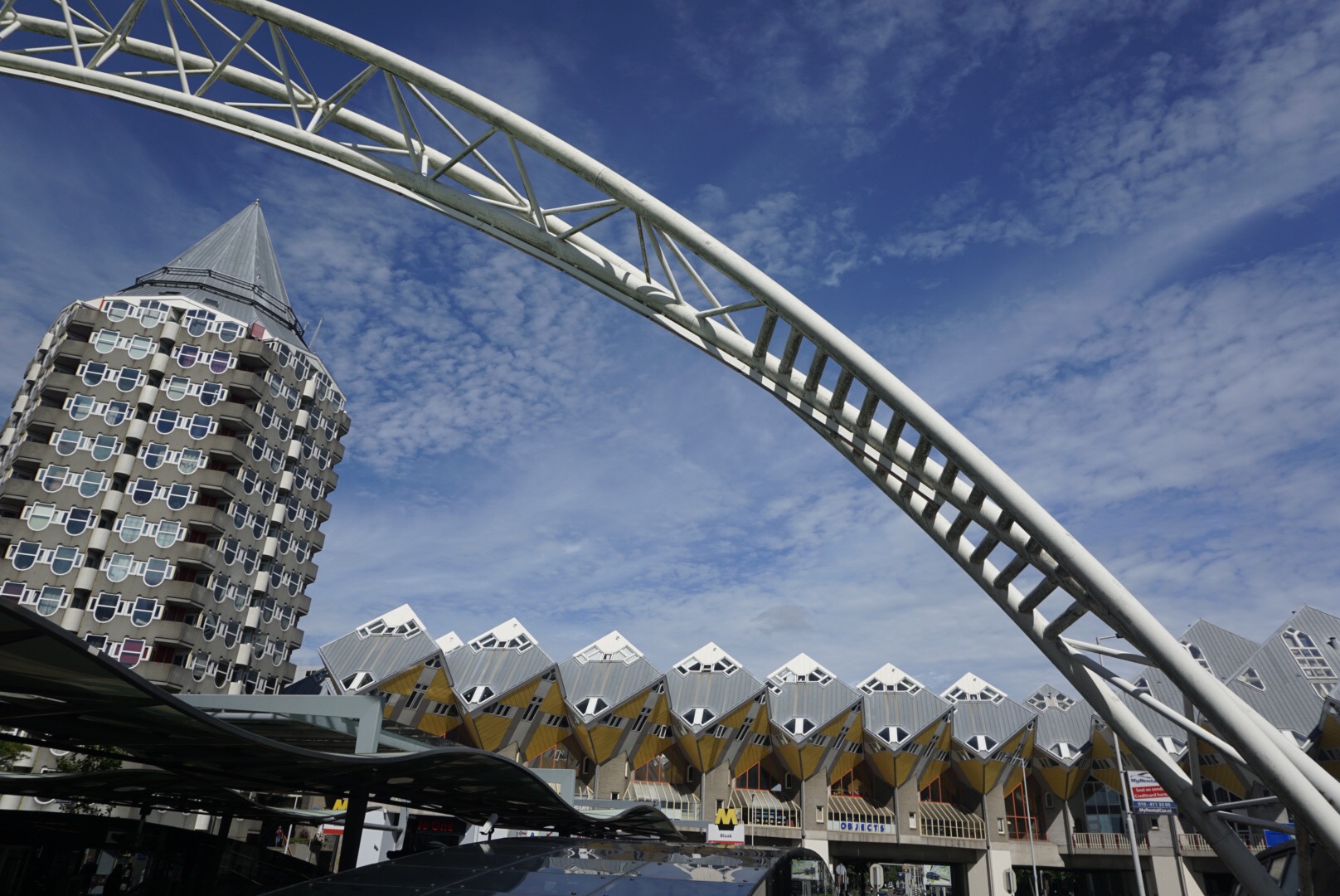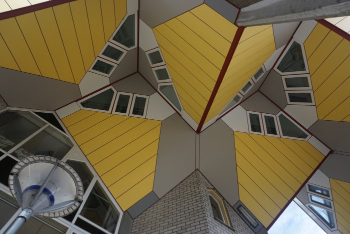 Wir starten in den Montag in regnerischem Grau. Von Brücke zu Brücke knipsen wir uns vor Richtung Zentrum. Der holländischen Variante des Weißen Hauses folgen die faszinierenden Kubushäuser aus den späten 70 er Jahren. Und schon stehen wir – mittlerweile wieder von der Sonne verwöhnt – vor der fast krachneuen Markthalle, deren Beton vor gerade mal zwei Jahren getrocknet ist. Die Kombination „Markthalle + Wohnungsbau“ ist einzigartig. Und klasse umgesetzt! Schlussendlich landen wir am späten Nachmittag wieder bei unserem Rotterdamer Lieblingstier, dem Schwan.