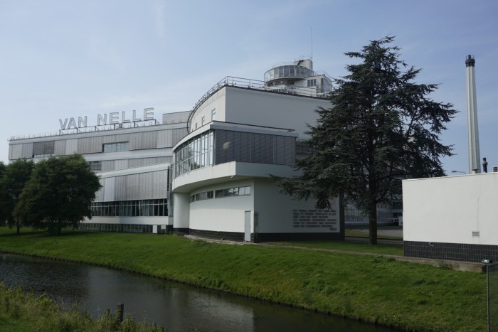 Als Highlight des Tages aber stellt sich für uns ein Objekt westlich der Innenstadt heraus: die Van Nelle Fabriek. Ein Industriedenkmal von außergewöhnlicher Schönheit, ein Meisterwerk der Architektur der späten 1920er Jahre, seit 2014 Weltkulturerbe de UNESCO. Ursprünglich zur Fertigung und Veredelung von Kaffee, Tee und Tabak genutzt, dienen die imposanten Hallen nach aufwendiger Sanierung heute Medienleuten, Designern und anderen Kreativen als Büro- und Veranstaltungsräume. Tja, die Auswahl der Fotos war nicht leicht; daher heute der eindeutige Schwerpunkt auf der wunderbaren alten Fabrik 😀.