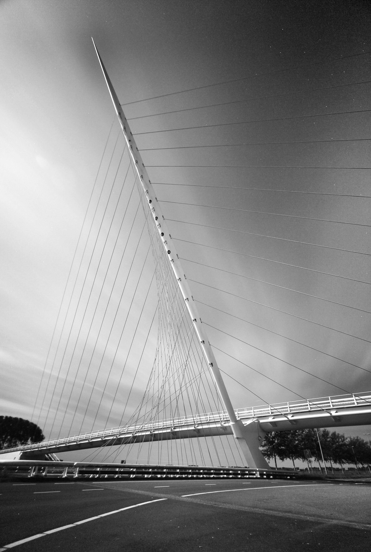 In den Niederlanden hat der begnadete Architekt einfach mal drei Brücken gebaut. Nicht etwa in einer Stadt, wo sie viele Bewunderer hätten, nein mitten auf dem platten Land. Zwischen Hoofddorp und Nieuw Vennep muss man sie entlang eines Wasserkanales suchen. Kein Schild weist dem Besichtiger den Weg.