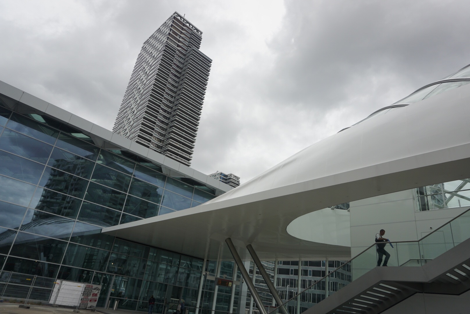 Was für eine Metamorphose! Zu der schönen, gemütlichen und kompakten Altstadt hat sich in den letzten Jahren nicht ganz heimlich, still und leise ein Neubauviertel dazu gesellt. Zwischen dem schicken, ebenfalls neuen Rathaus und dem nicht minder hübschen Hauptbahnhof gibt es also eine Menge zu bestaunen und auf den Speicherchip zu brennen. Die Einwohner dieser Stadt machen sich einen Spaß daraus, jedem prominenten Neubau der Stadt einen mehr oder weniger schlüssigen Spitznamen zu verpassen. Gerüchten zufolge vergessen die meisten über kurz oder lang, wie der richtige Name lautet. Um keine weiteren Gerüchte zu streuen, sei hier klargestellt, dass es sich bei den in „“ gesetzten Bildunterschriften nicht um meine Erfindungen handelt. Das Gleiche gilt für Platznamen, die sich für uns als deutsche Muttersprachler durchaus zweideutig oder zumindest missverständlich anhören. Und nun lasse ich die Fotos sprechen.