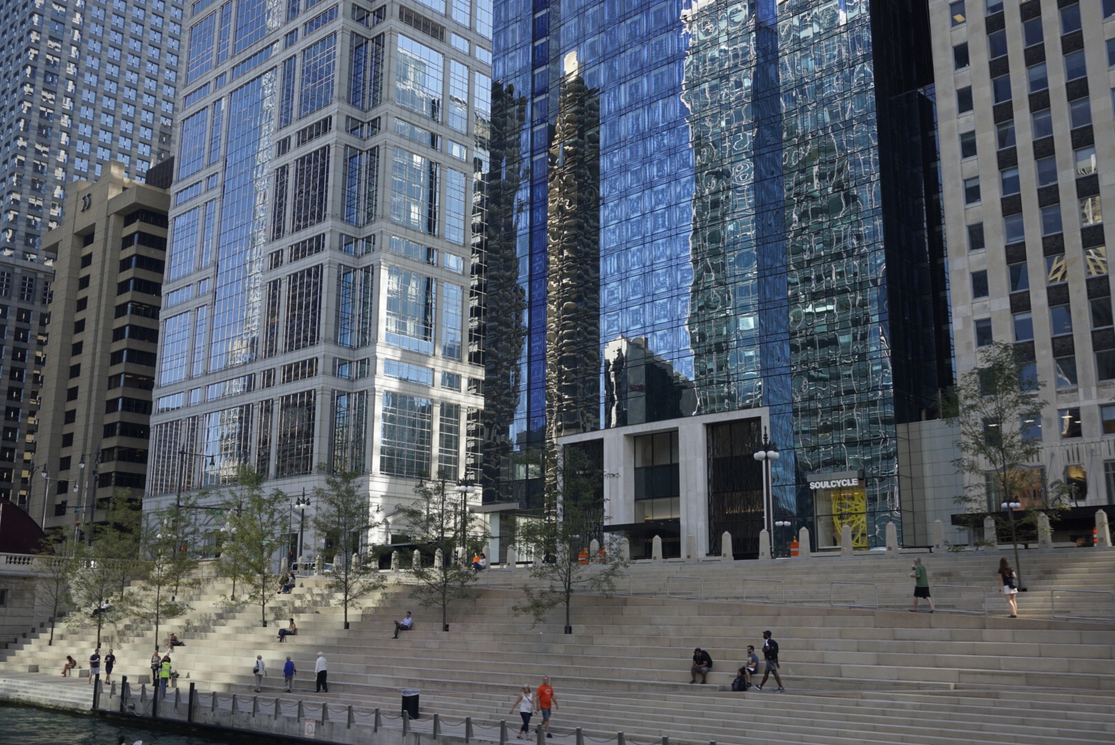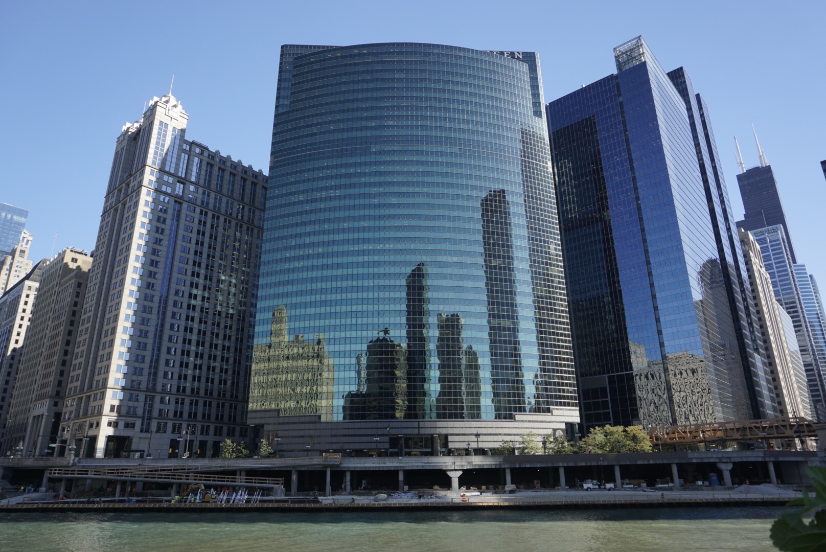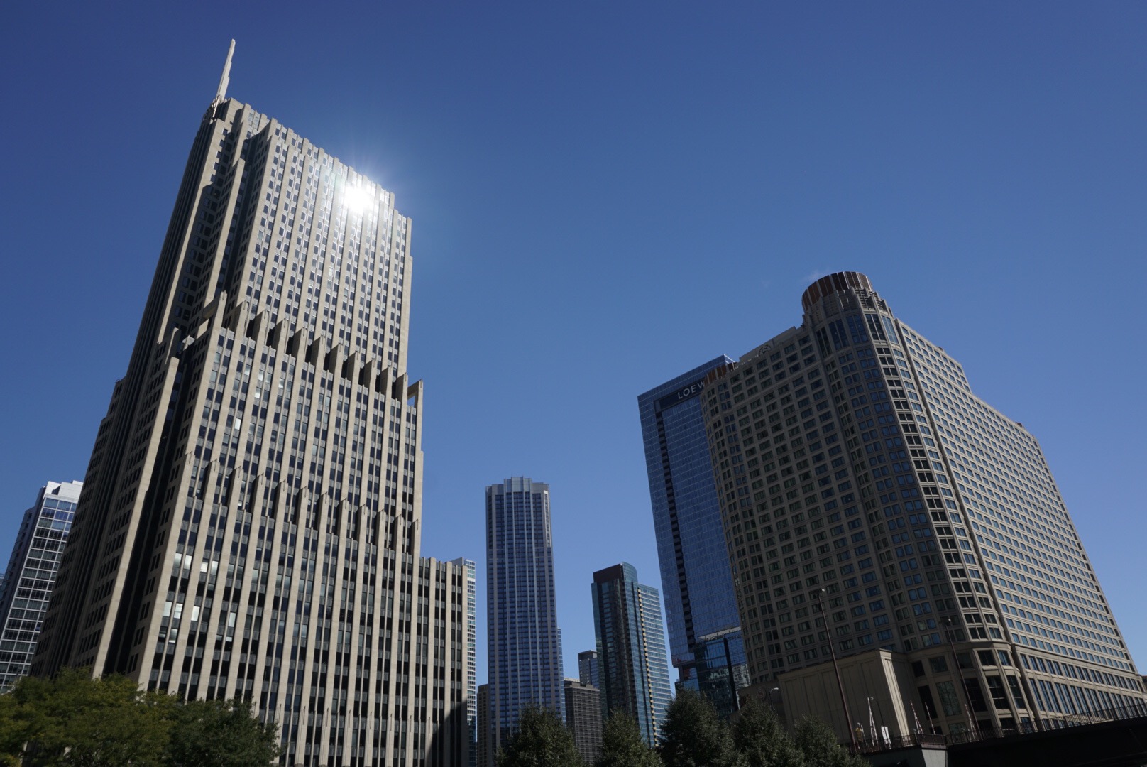 Während der nächsten 90 Minuten komme ich dann aus dem Staunen und Fotografieren nicht mehr raus. Die einstige Stadt der Schlachthöfe und Al Capones dieser Welt war und ist in Sachen Architektur unübertroffen. Nach dem großen Feuer 1871 hat sich alles, was architektonisch Rang und Namen hat, hier verewigt. Die Chicago Architecture Foundation, deren Guides unentgeltlich für die Stiftung arbeiten und am Ende der Tour sogar ein Trinkgeld ablehnen, bietet mittlerweile rund 85 unterschiedliche Touren zum Thema an. Die Bootstour jedenfalls ist legendär, der „Füllungsgrad“ des Speicherchips meiner Kamera auch. Details der Tour zu erzählen, würde an dieser Stelle den Rahmen sprengen. Ich lasse stattdessen ein paar Fotos sprechen, ebenfalls ohne Erläuterung zu den jeweiligen Bauten. Denn sonst käme ich heute vor lauter Schreiben nicht mehr aus dem Hotel raus.