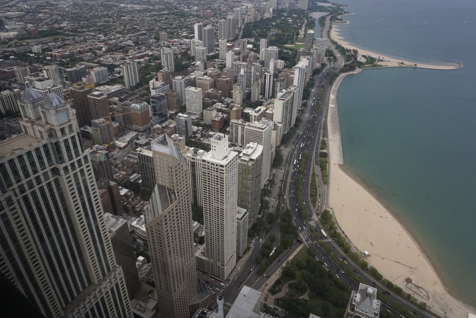 Nach der Tour schlendere ich, noch immer überwältigt und auch etwas erschlagen von all den Eindrücken, quer durchs Städtchen bei drückenden 30 Grad. Am Nachmittag verspüre ich den Drang zu Höherem und lasse mich mit ordentlich Ohrensausen hoch auf die Aussichtsplattform des 457 Meter hohen Hancock Tower katapultieren. Big John bietet dann auch einen grandiosen Blick auf die Stadt. Ich liebe es, wenn man mir zu Füßen liegt.