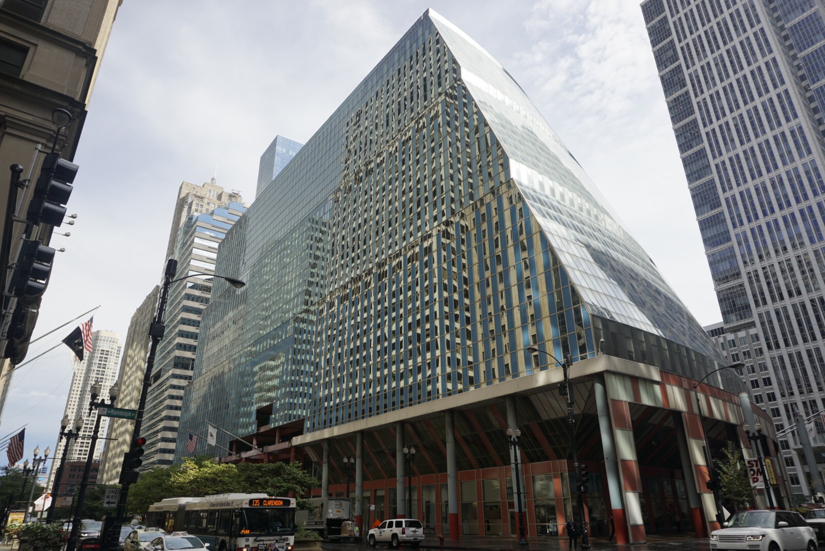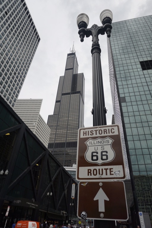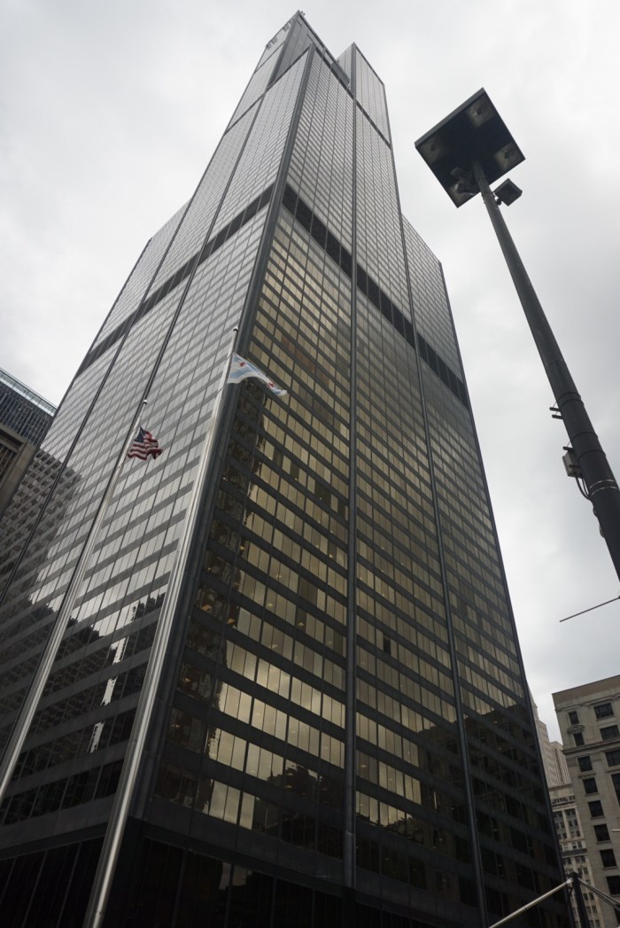 Ab durch den Financial District und hin zum höchsten Gebäude der Stadt, dem Willis (ehemals Sears) Tower. Bis 1997 war er mit seinen 527 Metern (Antenne inklusive) der welthöchste Bau. Längst von der Spitze abgelöst, ist und bleibt er trotzdem ein beeindruckendes Bauwerk mit seiner würfelförmig gestapelten Struktur. Eigentlich ist es ein Muss, auf die Aussichtsplattform hochzufahren und den Blick auf die Stadt zu genießen. Aber der Himmel ist mittlerweile wieder so grau, dass ich die Sache vertage und auf besseres Wetter warte. Ich bin ja mittlerweile verwöhnt hier, was das angeht :-).