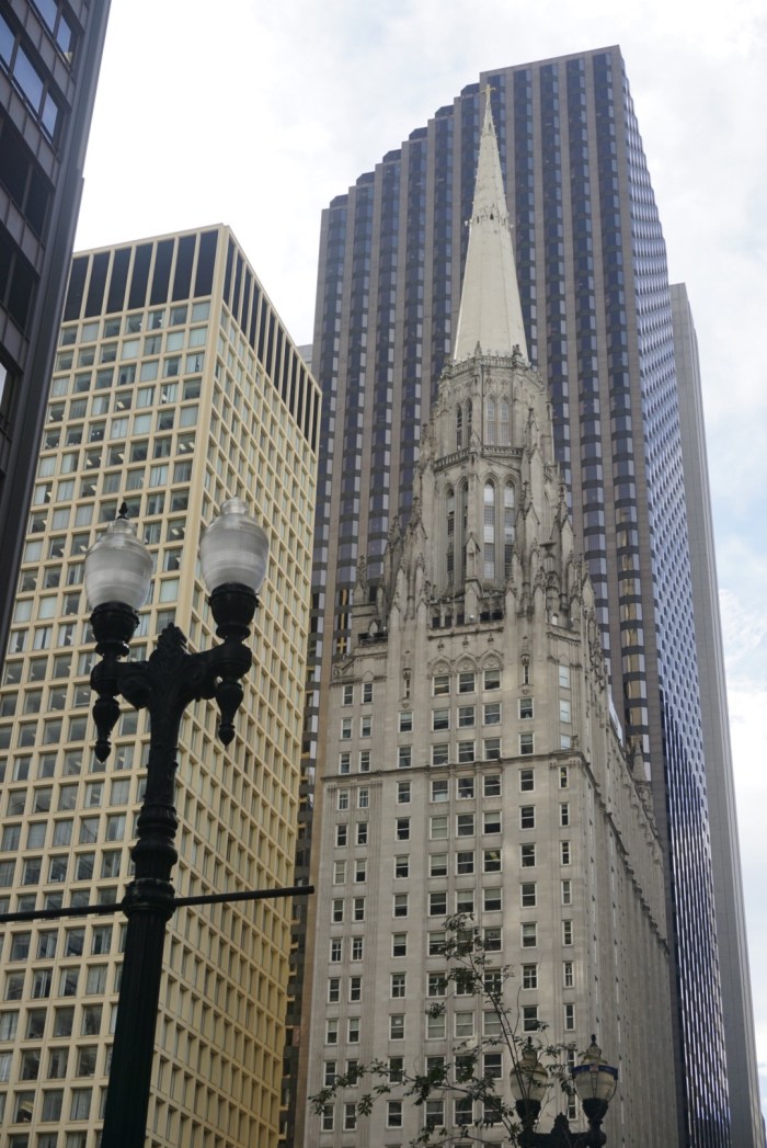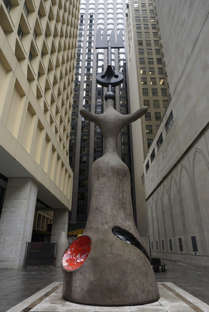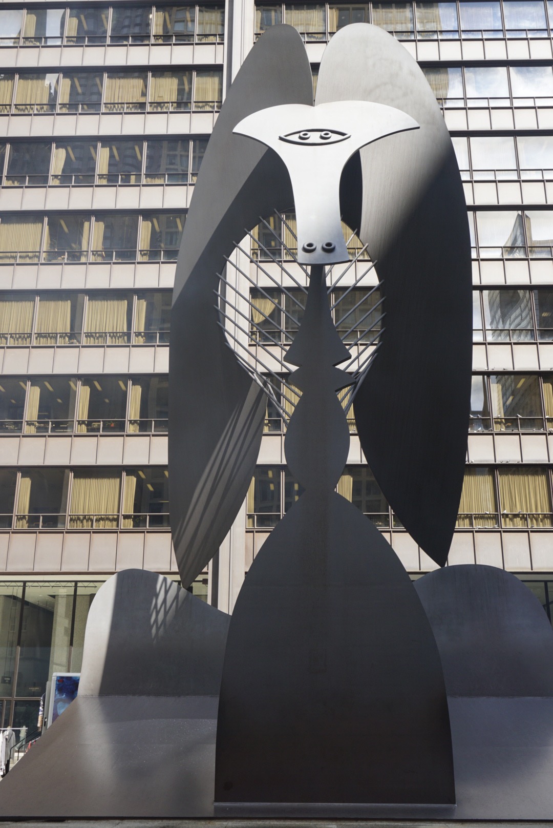 Ein paar Straßen weiter überrascht mich die Umgebung des Chicago Temple mit zwei beeindruckenden Skulpturen von Miro und Picasso. Spätestens jetzt wird mir klar, dass der Loop auch noch so eine Art Freilichtmuseum ist, für Besucher gratis. Die beiden Skulpturen nehmen mich so in den Bann, dass ich darüber fast vergesse, den kuriosen und zugleich höchsten Kirchenbau der Welt (das Ulmer Münster gewinnt hingegen den Wettbewerb um den höchsten Kirchturm) zu würdigen. Der Picasso ist so schön, dass ich mich gar nicht entscheiden kann, welche Ansicht ich hier rein stelle. Am besten gleich zwei :-).