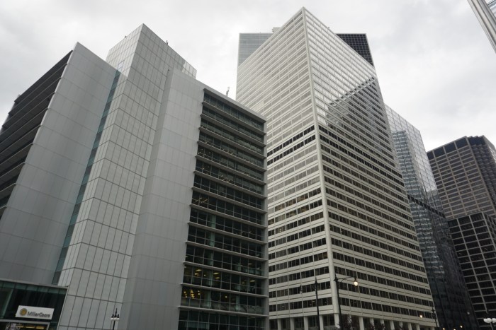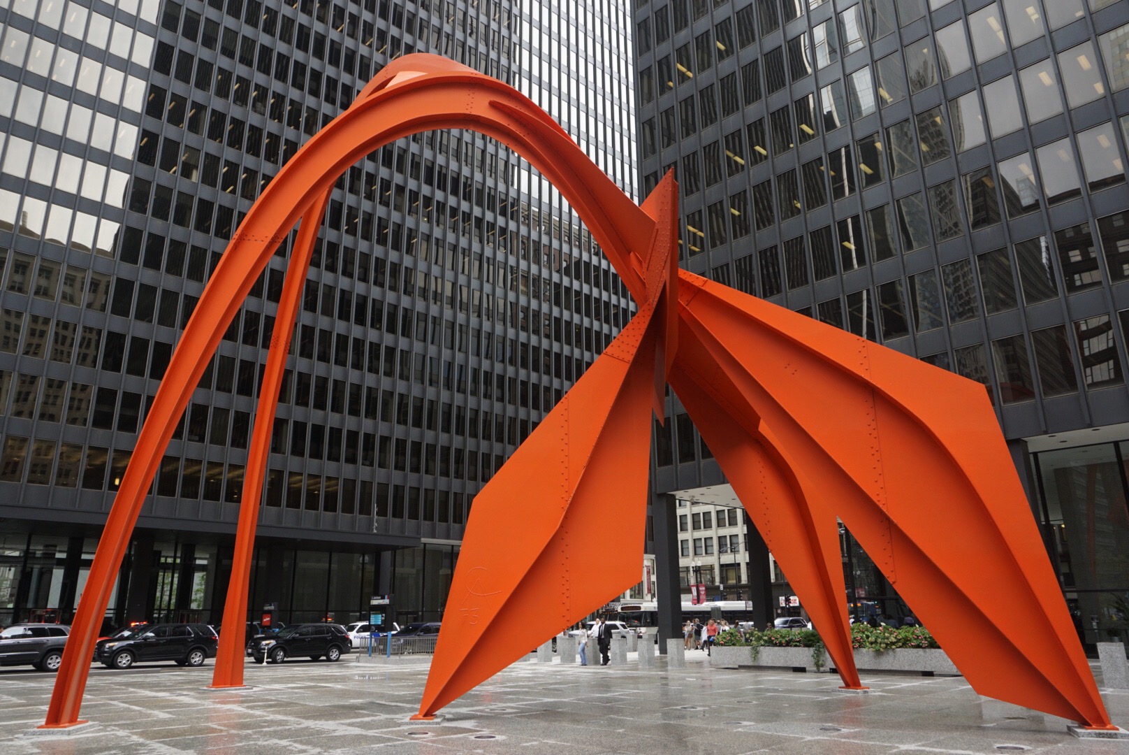 Weiter zur Federal Plaza. Dort hat sich der gute Herr Mies van der Rohe eindrucksvoll mit dem mehrteiligen Bundesverwaltungszentrum verewigt. Der eigentliche Blickfang ist jedoch der knallrote Flamingo von Alexander Calder.