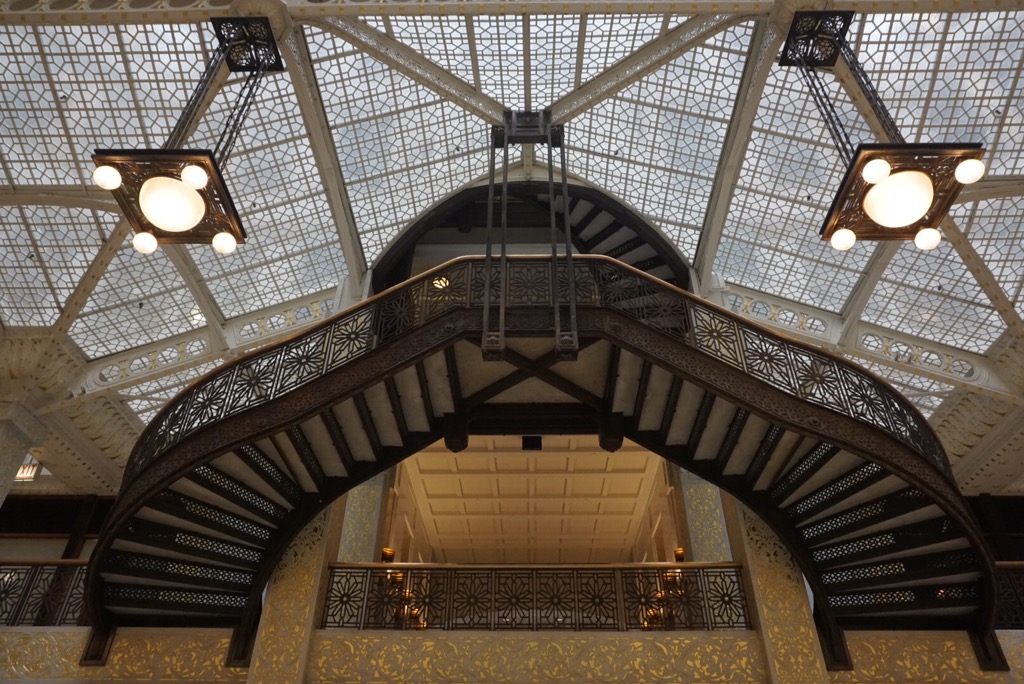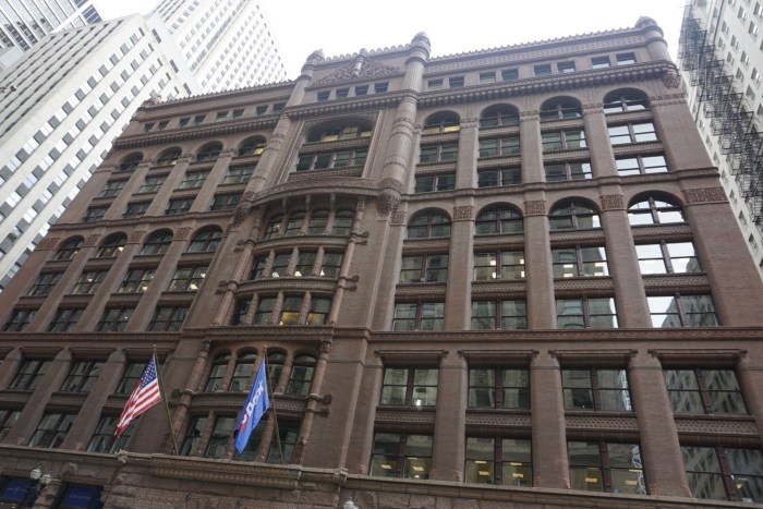 Das nächste Schmuckstück wartet gleich um die Ecke. Wo zuvor erst das Rathaus, dann ein Wassertank und anschließend die Stadtbücherei standen, steht seit Anfang des 20. Jahrhunderts The Rookery. Mit 12 Stockwerken eher ein Bonsai unter Chicagos berühmten Bauten, beeindruckt der Bau denn auch eher von innen als von außen. Zumindest mich … Die Lobby wurde von Frank L. Wright gestaltet. Schaut selbst und bildet eure eigene Meinung: