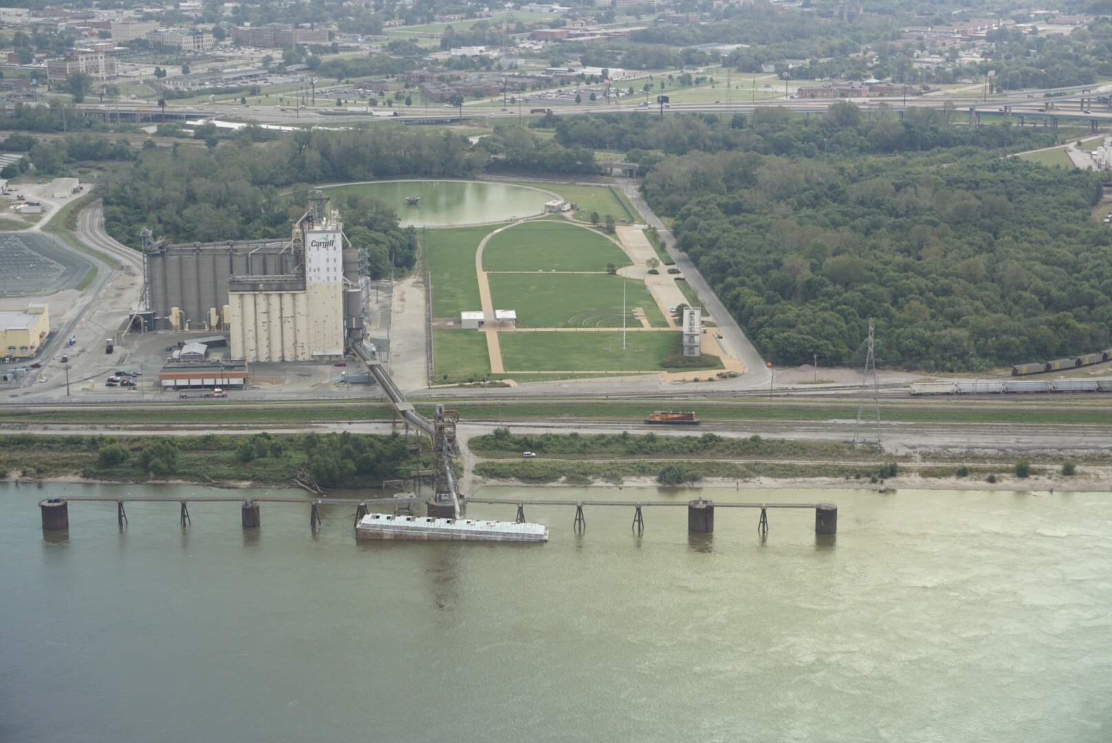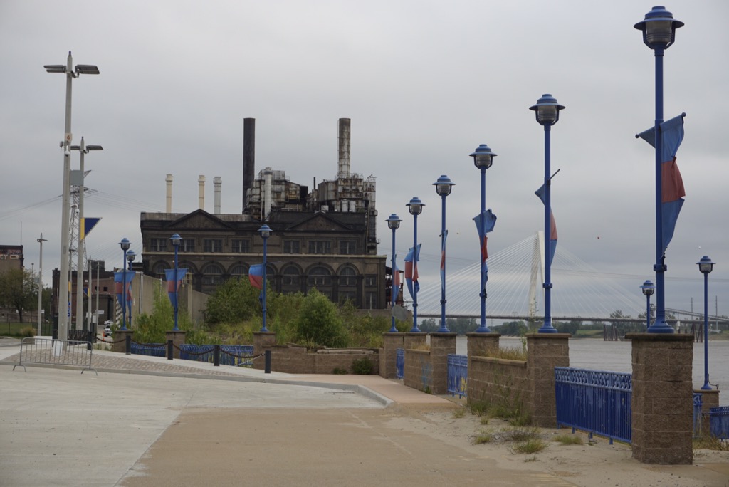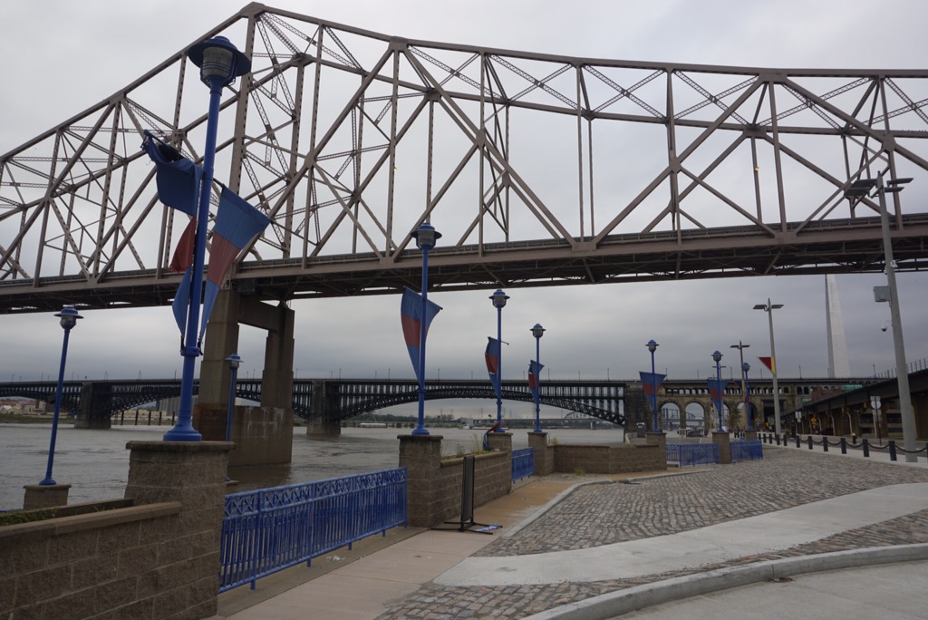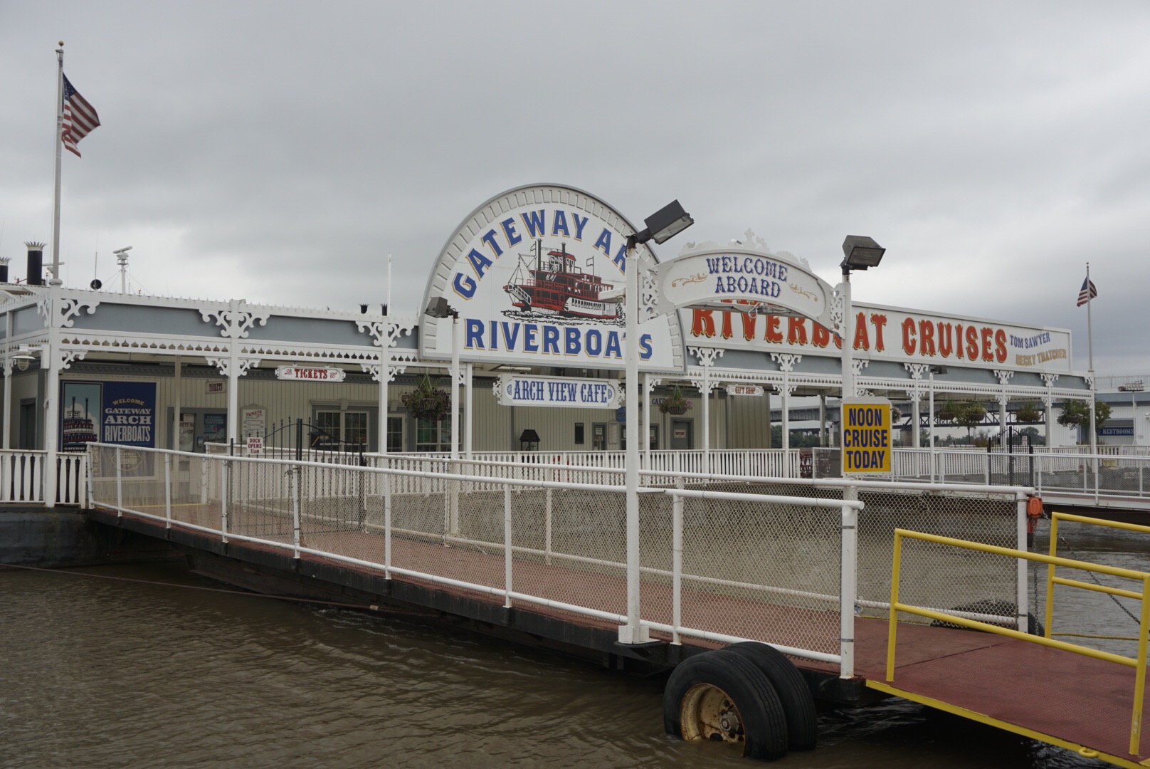 Nun denn, laufe ich eben an dem fetten Mississippi entlang. Ein kurzer Abstecher zur alten Hafenanlage, dem Laclede’s Landing …