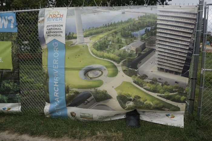 Doch nun zum Ernst des Lebens. Auf in die U-Bahn Richtung Hauptattraktion der Stadt, dem Gateway Arch. Ich steige ein paar Stationen weiter aus, um mich dem imposanten Teil via Flußufer bzw. quer durch die Parkanlage, die es umgibt, zu nähern. Nun, was soll ich sagen? Minneapolis und St. Louis haben sich abgesprochen. Sobald ich einen Fuß in die Stadt setze, wird gebaut. Und so stehe ich vor einem Bauzaun, der mich daran hindert, die Parkanlage zu betreten. Denn die wird komplett neu gestaltet.
