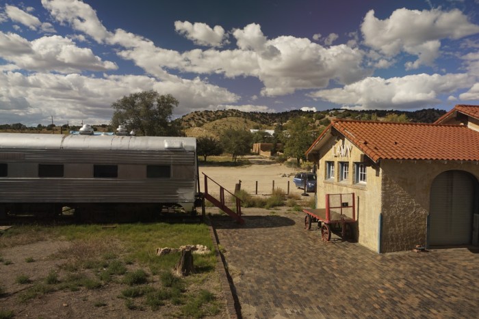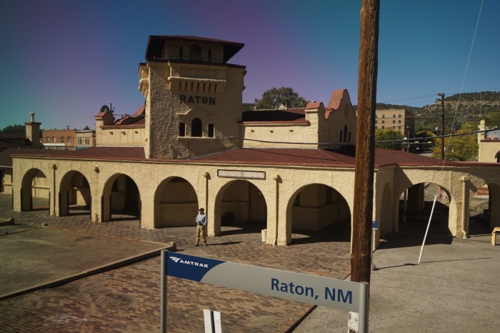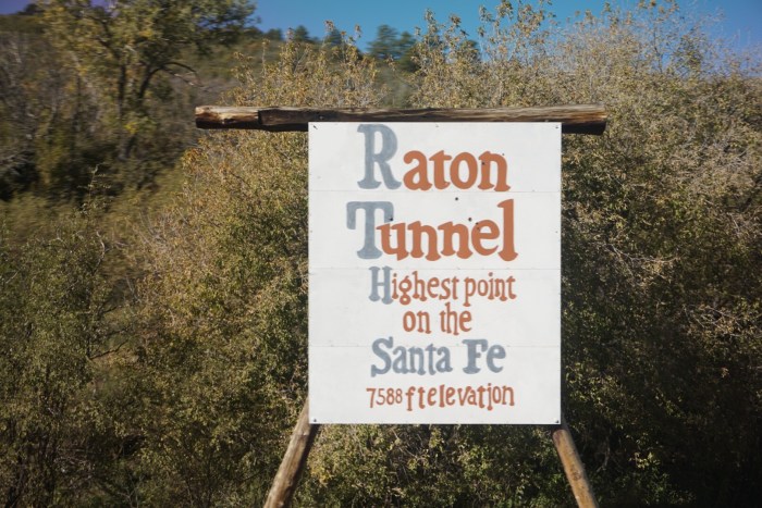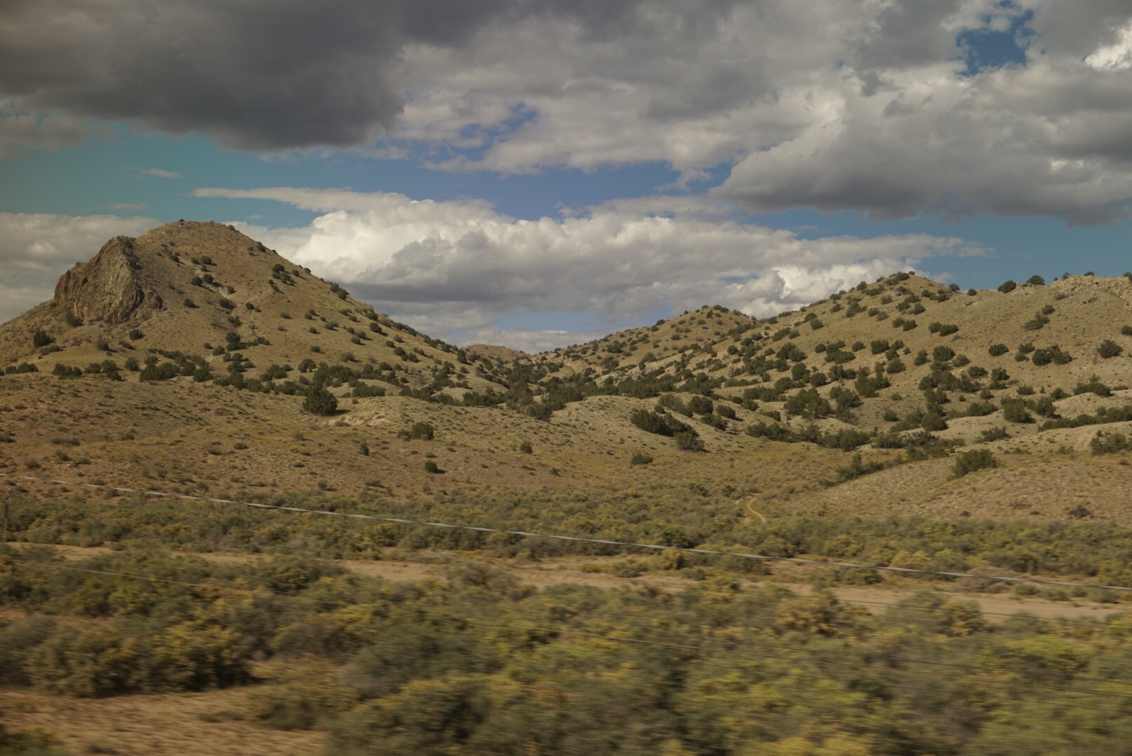 Je weiter wir nach Westen gelangen, desto grüner wird es. Kurz vor Raton treffen wir nicht nur auf den berühmten Santa Fe Trail, sondern passieren auch die Grenze zwischen Colorado und New Mexico. Es ist zugleich mit 2.300 Metern der höchste Punkt auf der Route des Southwest Chief. Direkt dahinter wird es finster, denn wir fahren in den einzigen Tunnel auf der gesamten Strecke. Nach Raton wird die Landschaft wieder kahler, flacher, versteppter. Jetzt wird es Zeit, die Uhr um eine Stunde zurück zu drehen. Nun hinke ich acht Stunden hinter euch her. Mountain Time statt Central Time.