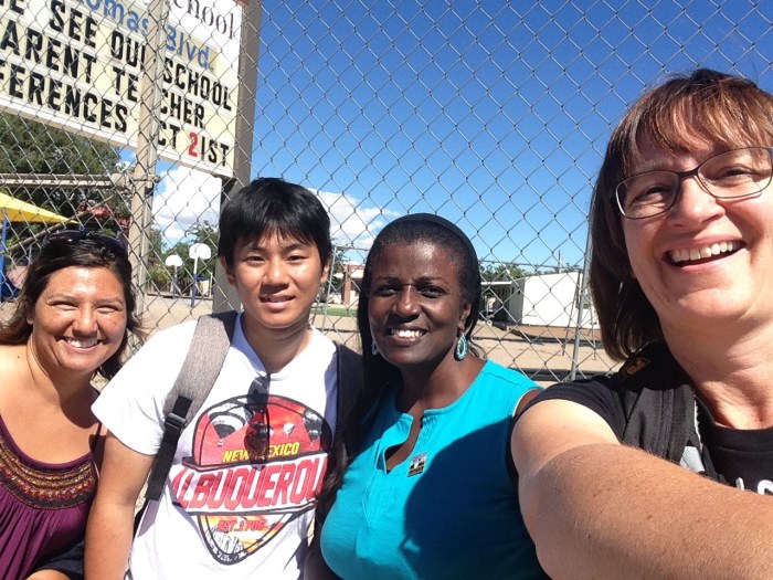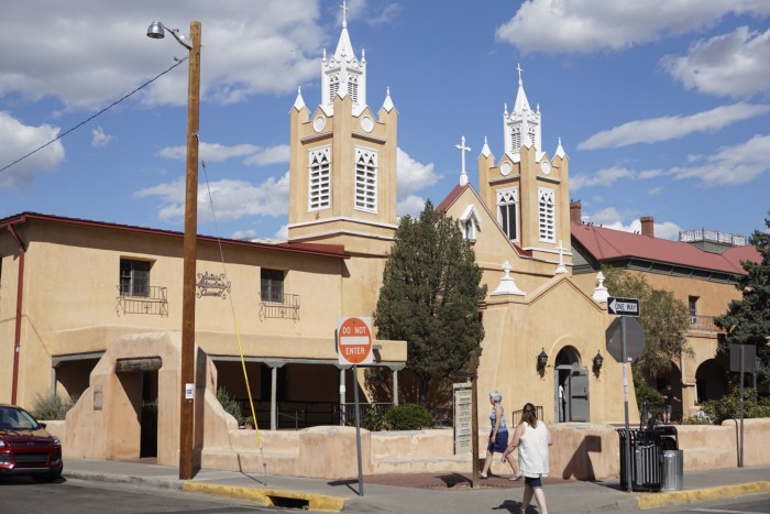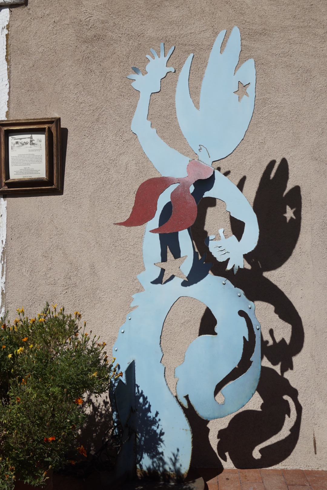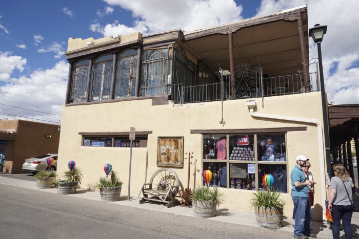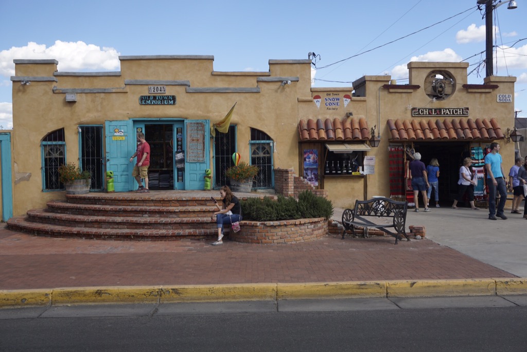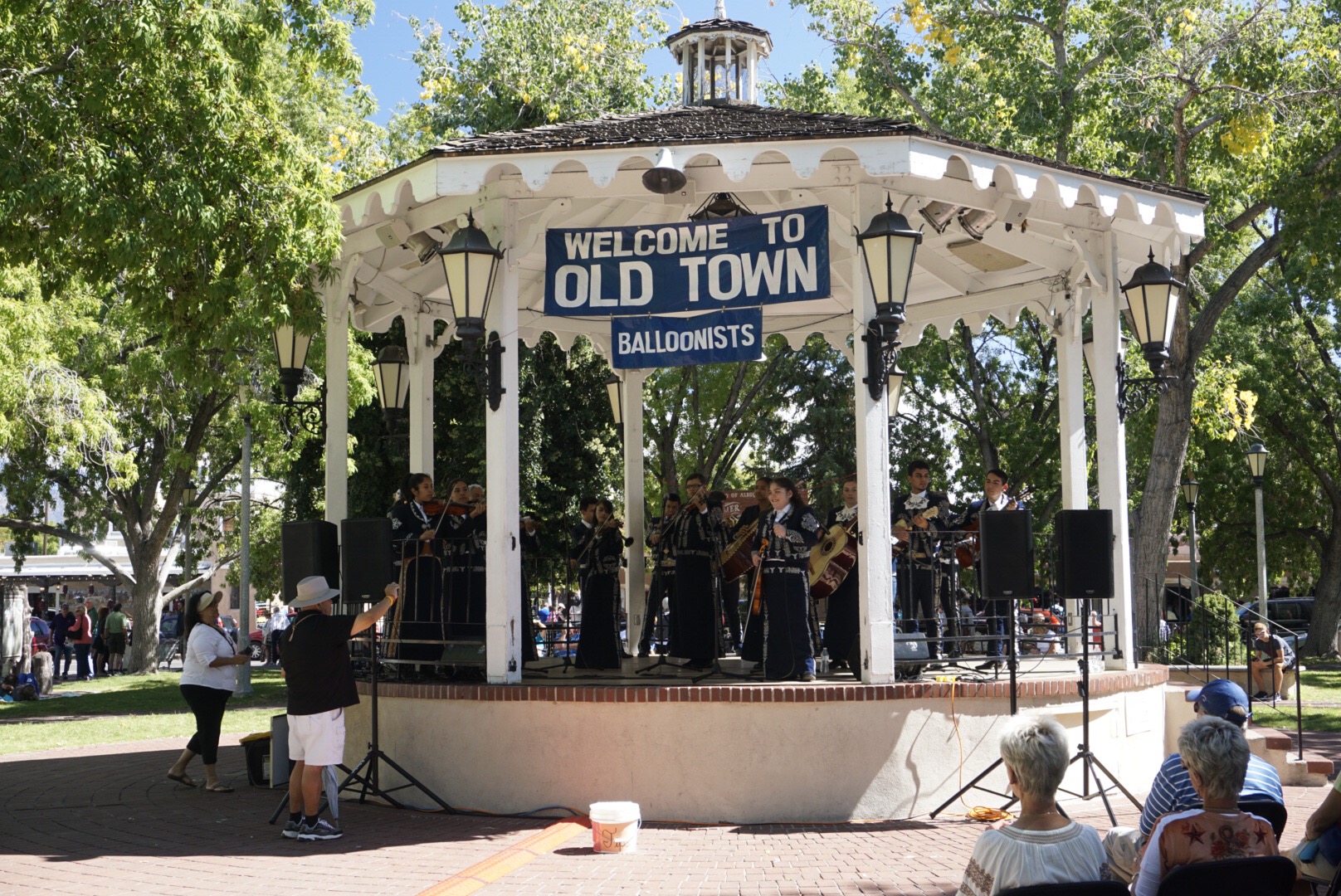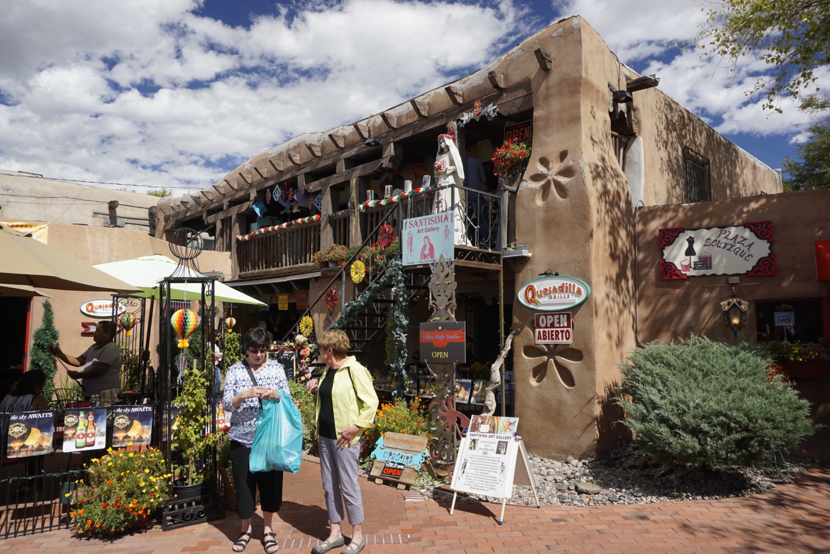 Nach einer längeren Skype-Runde mit Stefan treibt mich der Hunger raus. Die kleine, überschaubare Altstadt, nicht zu verwechseln mit Downtown, wo ich wohne, ist ein kleines Stückchen von der Innenstadt entfernt, aber gut zu Fuß zu erreichen. Wenn man denn den Weg gefunden hat … Die Richtung ist erst mal klar, aber die angebliche Meile (1,6 km), die der Weg bis dahin betragen soll, kommt mir verdammt lang vor. Zumal auch nirgends Hinweisschilder sind. Ich frage einen entgegenkommenden Herrn, der mir weiterhilft. Das kriegen zwei andere Damen mit, die ein paar Meter hinter mir laufen. Und schon habe ich nette Gesellschaft in Form von zwei Lehrerinnen aus Los Angeles, die mal eben fürs Wochenende nach Albuquerque geflogen sind wegen, na was wohl, der Balloon Fiesta.