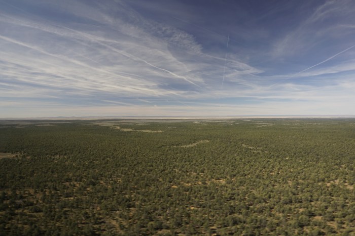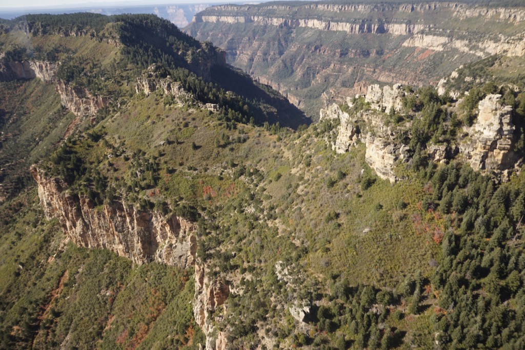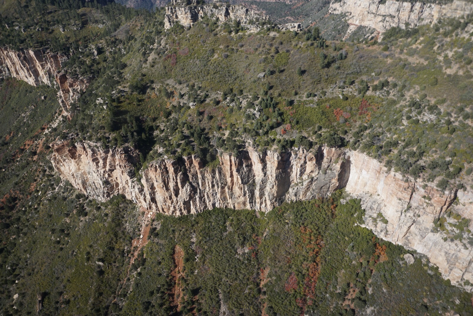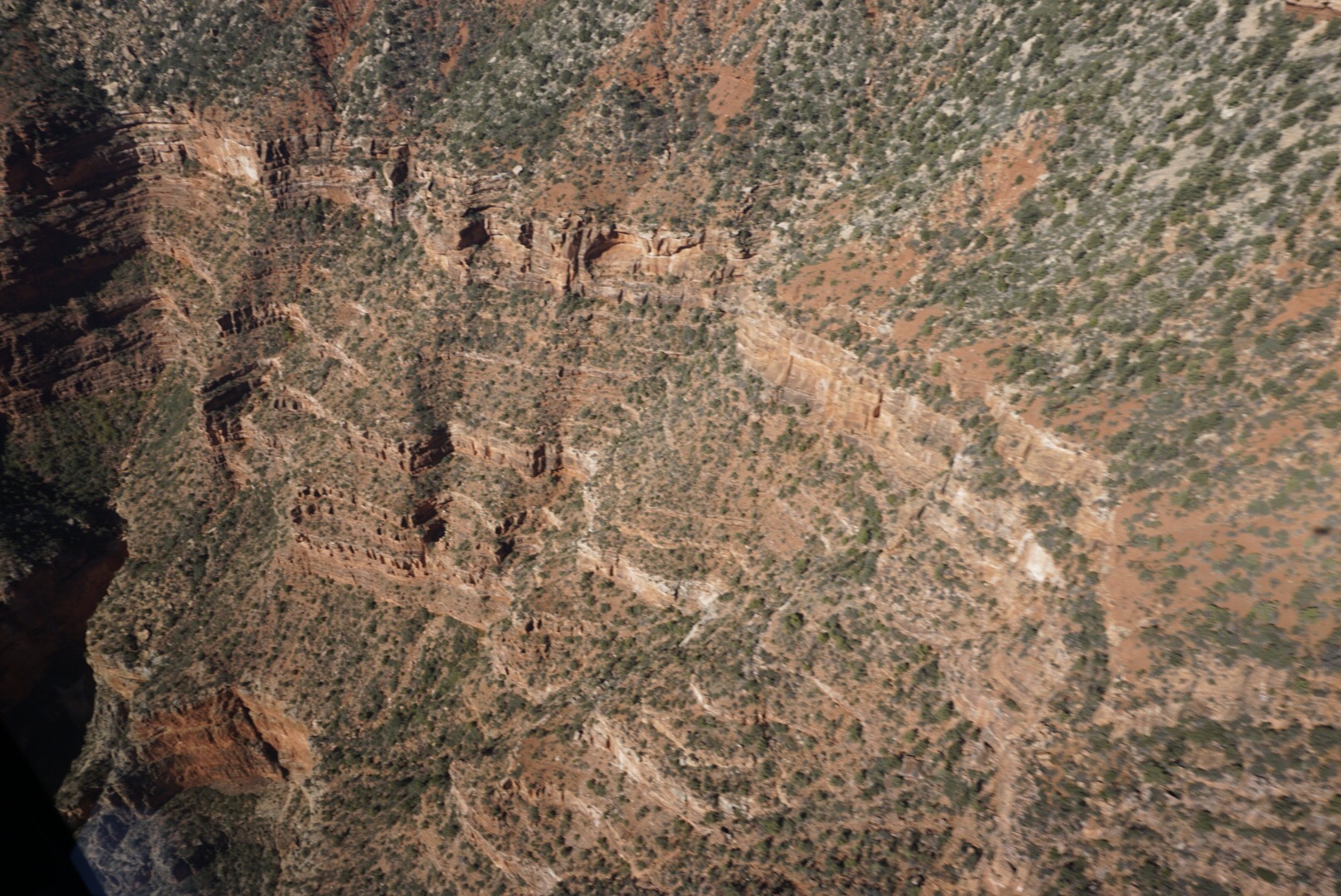 Es geht los. Die ersten paar Meter ruckelt sich der Flieger zurecht. Der Wind spielt ein wenig mit uns, aber je weiter man nach oben kommt, umso ruhiger wird es. Auf dem Weg zum Canyon sieht es erst mal so aus: