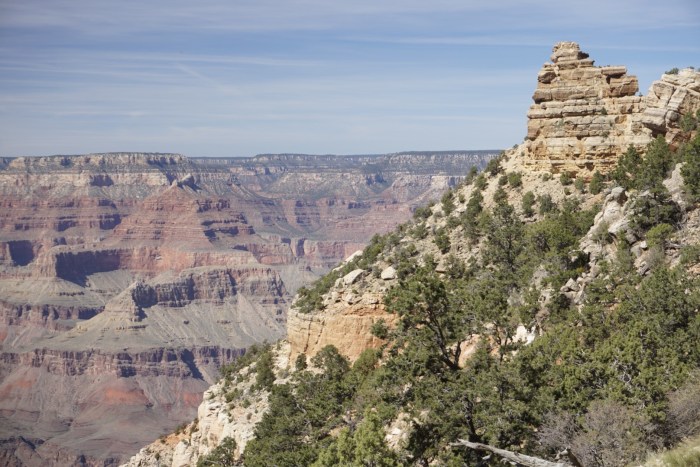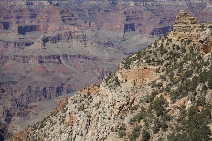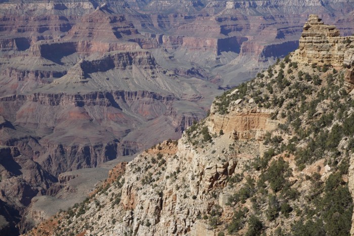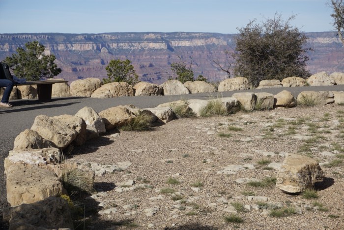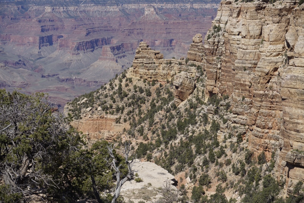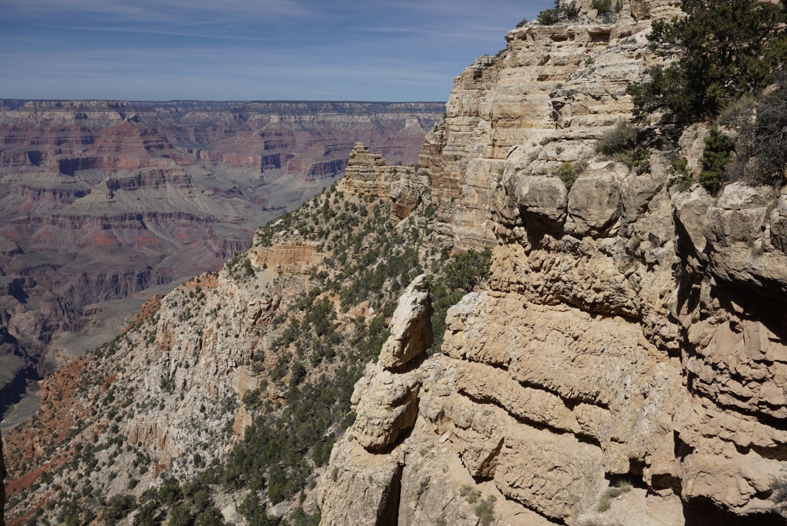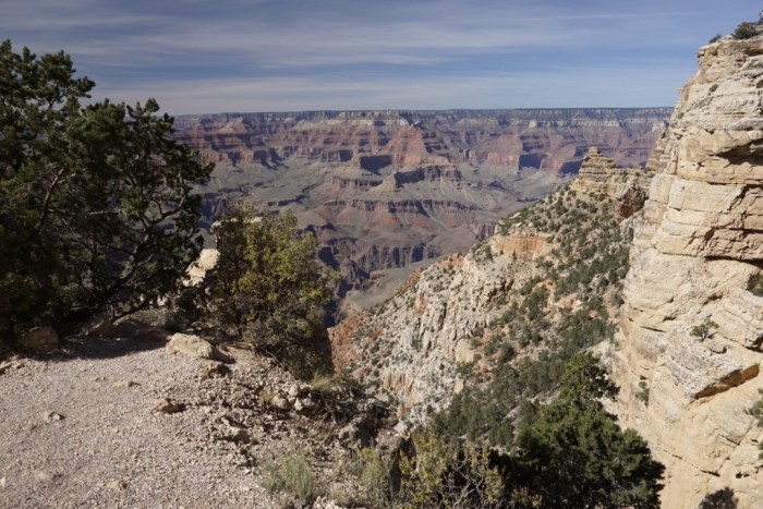 Wieder oben angelangt, lasse ich mich vom Bus noch kurz zum nächstgelegenen Aussichtspunkt, dem Yaki Point, bringen, bevor es, wiederum per Bus, zurück Richtung „Zentrum“ geht. Zum „Auslaufen“ wandere ich noch rund 5 Kilometer auf dem asphaltierten, ebenerdigen Rim Trail zwischen Yavapai Point und Bright Angel Lodge entlang, der ebenfalls wunderschöne Ausblicke bietet.