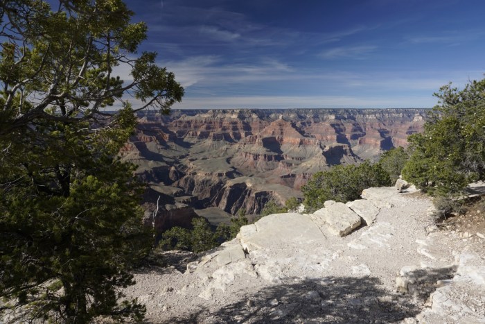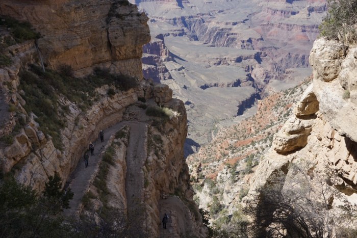 1. Danke! Ja, der Flug wäre genau dein Ding gewesen. Nicht 😀. Den Rim Trail würdest du sicher mögen. Keine Steigungen, und man kann jederzeit aufhören mit dem Wandern. Die Mulis transportieren alles Mögliche den Canyon rauf und ganz runter. Der Weg ist nicht durchgängig mit Balken durchsetzt, nur in manchen Teilabschnitten. Schau mal z.B. das Foto mit dem Schotten im gleichen Beitrag. Der Weg ist überwiegend so.