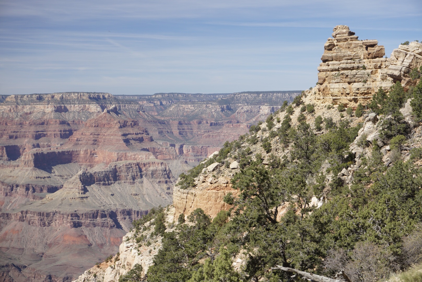 Mein Ziel naht: der Einstieg zum South Kaibab Trail. Da dieser Weg weniger frequentiert wird als der Bright Angel Trail weiter westlich, und er außerdem noch schönere Ausblicke bieten soll, habe ich mich für ihn entschieden.