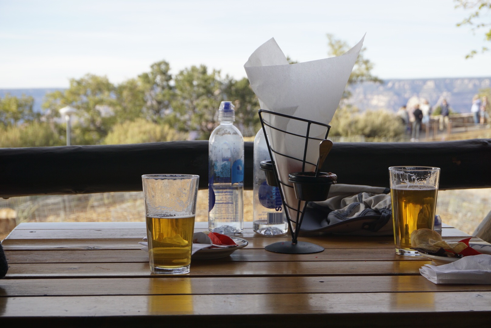 1. Danke 😀! Ja, die Stöcke hätten vor allem das Runterlaufen erleichtert, mir aber nicht die fehlende Kondition ersetzt … Nun, das ausgewaschene Material hat sich ja über einen extrem langen Zeitraum verdünnisiert. Und auf dem Weg zum Golf von Mexico hat der Colorado ja noch etliche Kilometer vor sich, um hier und da was abzulagern. Das Bier meiner Tischnachbarn kam relativ frisch an. Sooo schnell konnten die das gar nicht runterkippen! Die sahen mir jedenfalls nicht danach aus, dass sie meinen Tee bevorzugt hätten 😂.