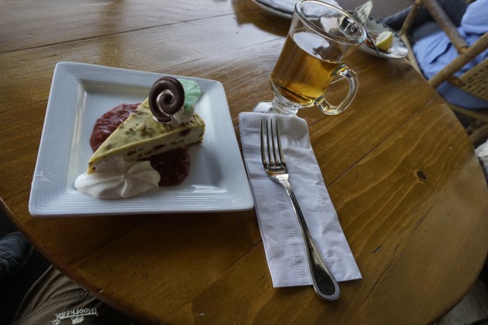 Zum Ausklang des Nachmittags gönne ich mir im besten Haus am Platz, dem „El Tovar“ Hotel, auf der Terrasse mit Canyonblick ein Stückchen Küchen und eine Tasse Tee.