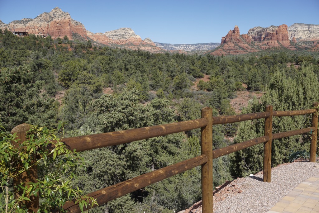 Am Bahnhof fährt der Shuttlebus ab, für den ich vorgestern einen Platz für die Hin- und Rückfahrt gebucht habe. Ich wundere mich etwas über die vielen Leute und frage mich, wie die alle in einen dieser kleinen Busse passen sollen. Doch das Geheimnis ist schnell gelüftet: die Masse will nach Phoenix, und für die ist der Bus gedacht, der gerade vorgefahren ist. Es stellt sich heraus, dass für heute nur zwei Leute den Shuttle nach Sedona gebucht haben: ein Typ aus Miami und ich. Und dafür schicken die keinen Bus in die Spur, sondern vergeben den Auftrag weiter. Und so komme ich ohne Aufpreis in den Genuss, in einer schwarzen Audi-Limousine mit Chauffeur im Anzug stilecht kutschiert zu werden :-). Bin wahrlich schon weniger komfortabel durch die Gegend gefahren (worden).