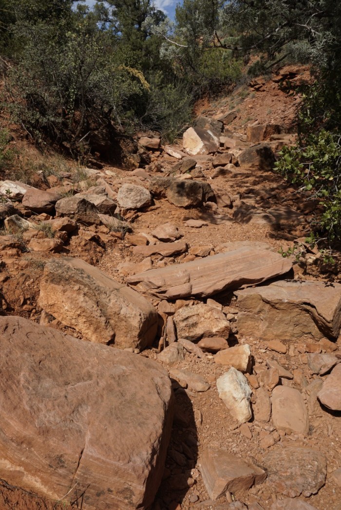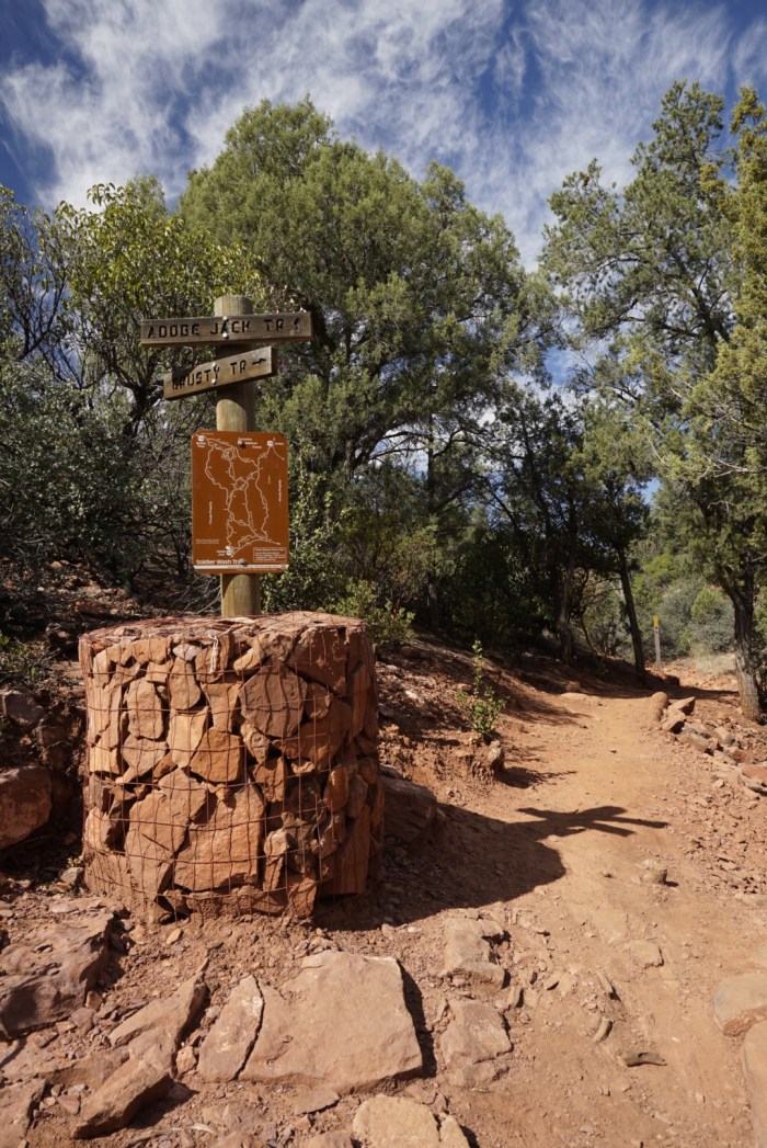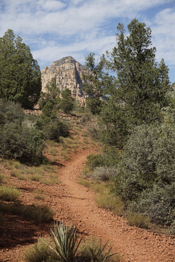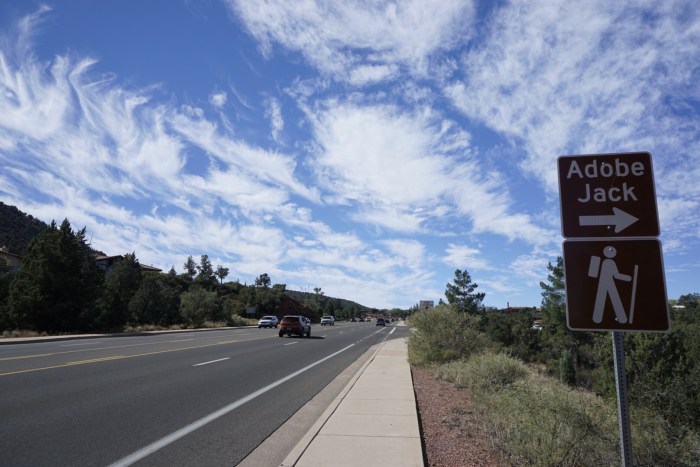 Auf dem Weg dorthin treffe ich auf eine sportlich aussehende Frau, die ich gleich interviewe. Und siehe da, ich bin an die Richtige geraten. Die nette Dame aus San Francisco mit Eigenheim hier in Sedona kennt sich bestens mit den Wanderwegen aus und empfiehlt mir eine schöne Route.