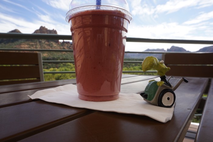 Auf den Schreck genehmigen der Alte Sack und ich uns erst mal einen leckeren Fruchtsmoothie.