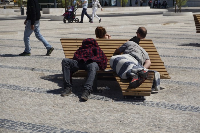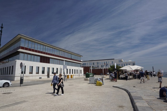 Rüber auf die andere Straßenseite, quer durch den Bahnhof durch, und schon lande ich an der Uferpromenade des Téjo. Hier wird bei angenehmen 25 Grad schon ordentlich gegessen, getrunken, flaniert und gechillt, was das Zeug hält.
