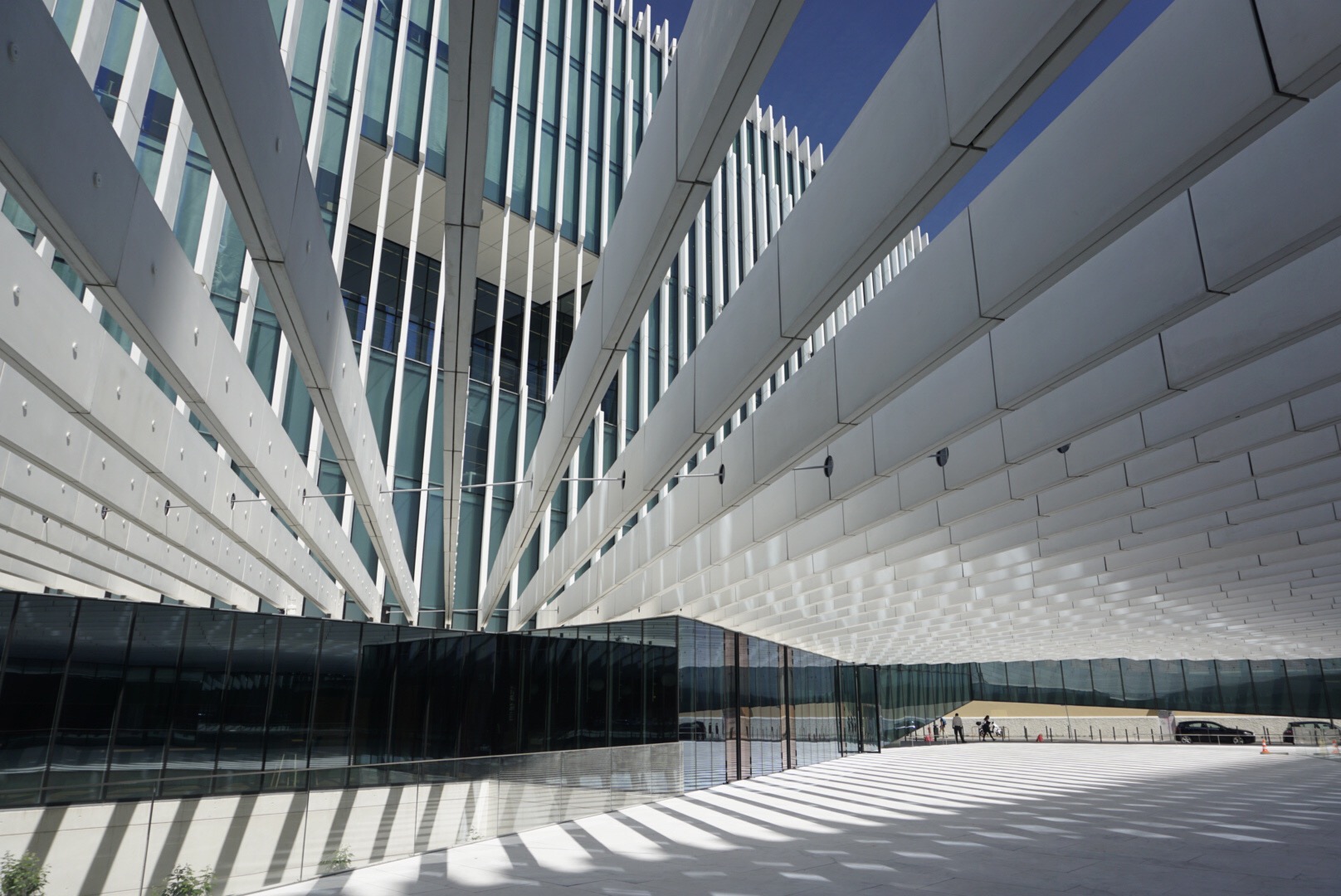 … wo ich es mir mit einem Galão und einem Vanilletörtchen gut gehen lasse und die nette Atmosphäre genieße. Wieder draußen, zieht ein spektakulärer Neubau meine Aufmerksamkeit auf sich. Ein Energieunternehmen hat sich dieses schicke Verwaltungsgebäude gegönnt: