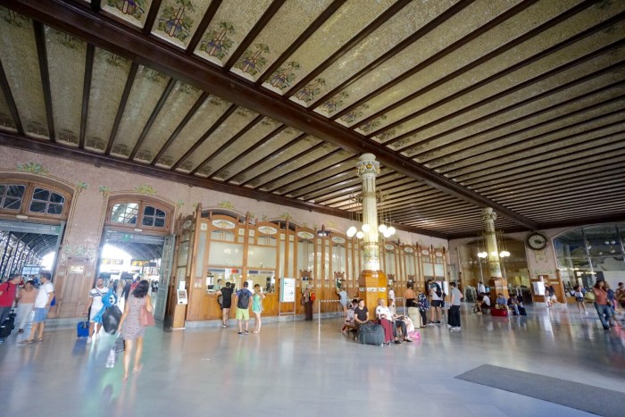 Der Bus spuckt uns vor der wunderschönen Estación del Norte (heutiges Titelfoto) aus, die in diesem Jahr ihren hundertsten Geburtstag feiert. Seinem Namen zum Trotz liegt der Nordbahnhof am Südrand der damaligen Stadt 😀. Er ist ein schönes Beispiel für die katalanische Variante des Jugendstils, dem Modernisme.