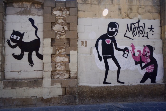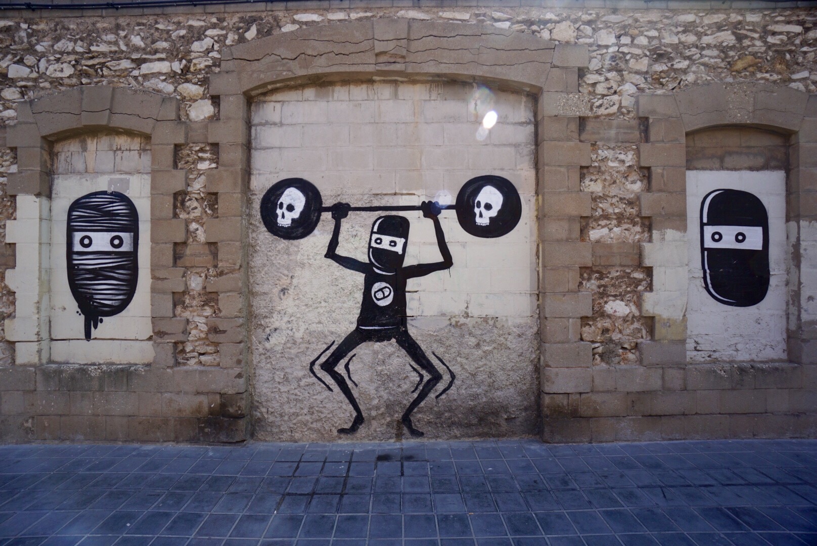 Das Veles e Vents von Chipperfield und auch die Werft, die wir uns gerade angeschaut haben, liegen im Hafenviertel Grau. Da es direkt an unser Wohnviertel angrenzt, durchqueren wir es auf dem Weg nach Hause. Das dauert länger als gedacht, denn was uns gestern zwischen Markthalle und den Wehrtürmen in der Altstadt geboten wurde, findet hier seine Fortsetzung: Street Art vom Feinsten!