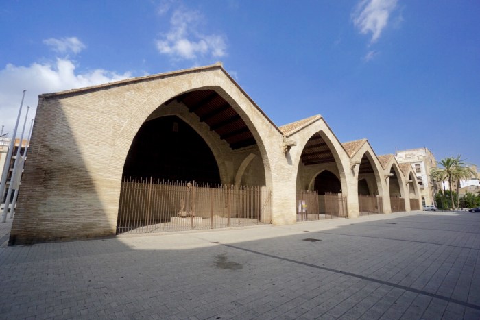 … laufen wir am Hafenbecken entlang zur nahegelegenen Atarazanas, der mittelalterlichen königlichen Werft aus dem 14. Jahrhundert. Dieses imposante Industriedenkmal mit seinen fünf parallelen Hallen diente nicht nur dem Schiffsbau, sondern fungierte auch als Lager für Waffen und diverse nautische Gerätschaften.