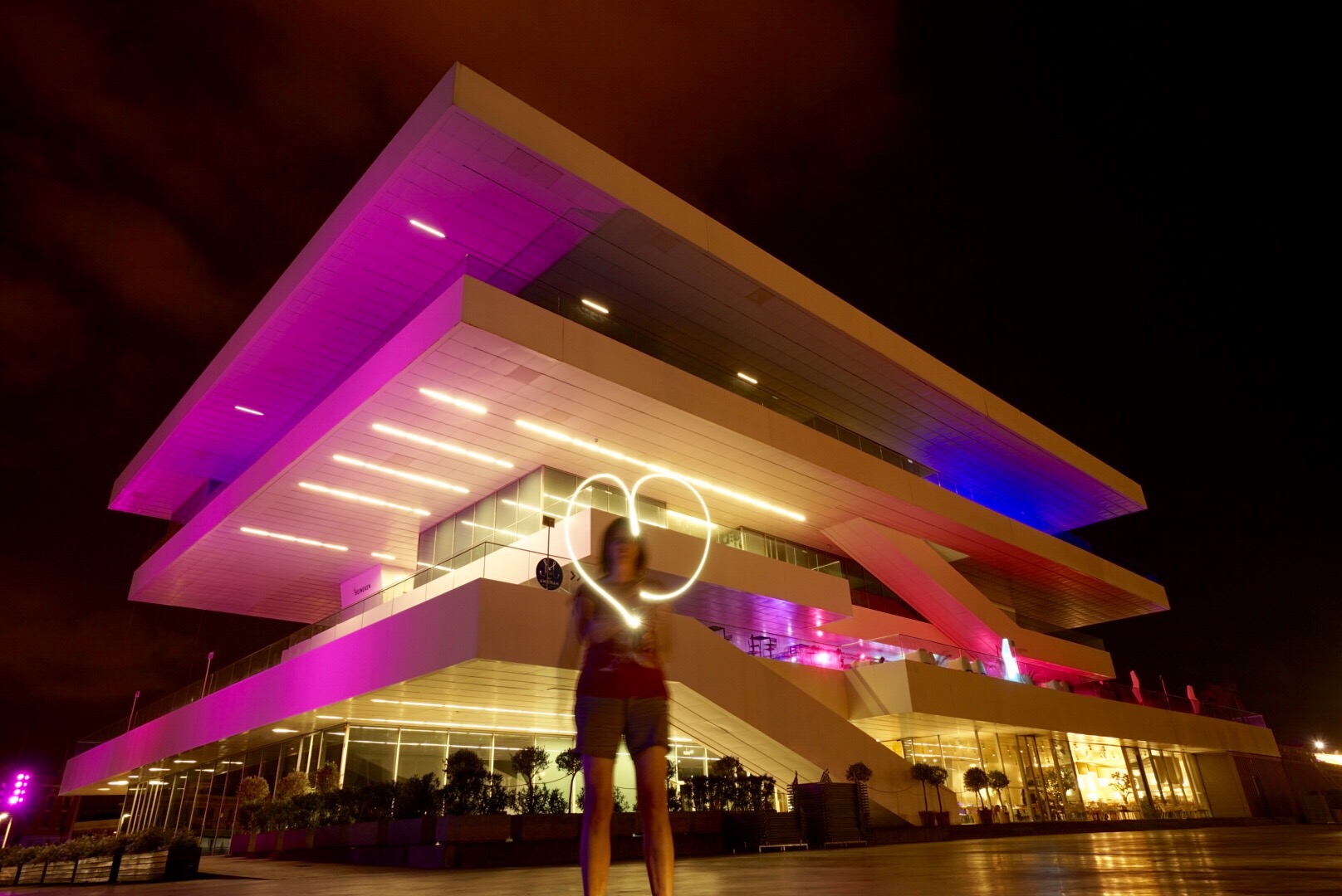 It’s Siesta time. Ab nach Hause in die kühle Bude! Nachmittags hängen wir eine Runde am Strand ab und nehmen abends Anlauf für einen weiteren Ausflug zum Veles e Vents. Schon wieder der olle Chipperfield? Ja! Als ob wir es geahnt hätten: der alte Knabe bietet heute tatsächlich eine andere Lightshow als gestern 😀. Haben die Stative also auch noch mal ihren Spaß. Und auch Faulpelz Elke ist heute wieder aktiv am Start.