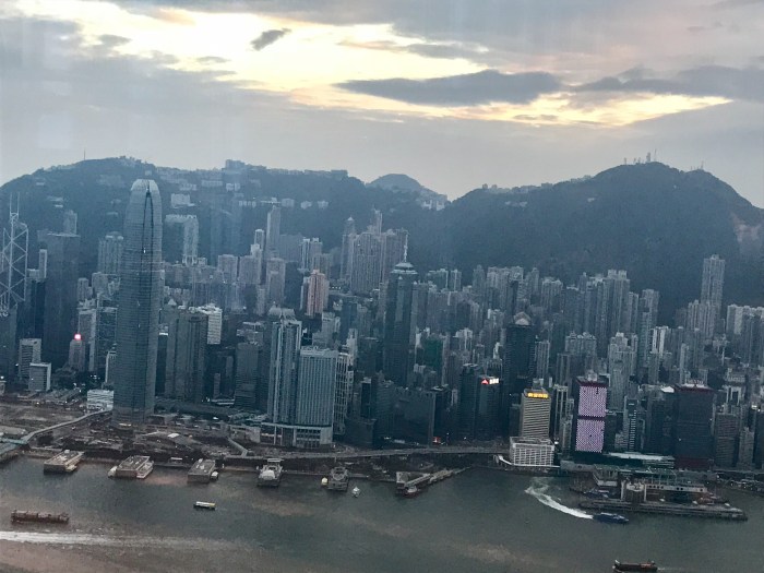 Zeit für eine Pause. Im 103. Stockwerk des ICC genieße ich in 425 Metern Höhe Tee, Kuchen und diese Aussicht: