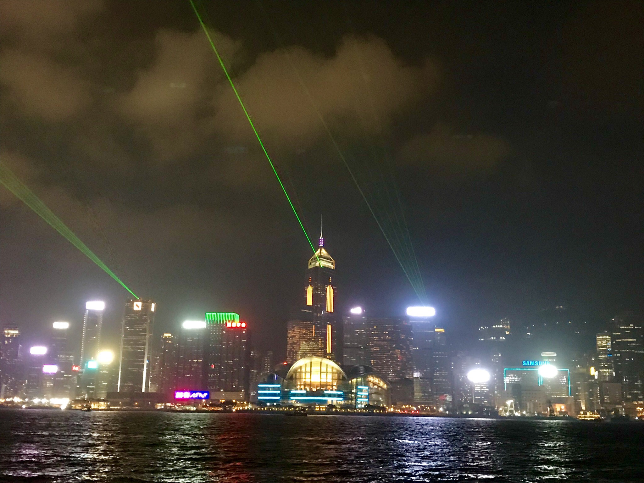 Ein Blick auf die Uhr rät mir, mich so langsam in Richtung der Südspitze Kowloons zu bewegen. Dort startet um 20 Uhr die tägliche Lichtshow auf der gegenüberliegenden Seite, dem Hongkong Island. Qualifizierte Nachtaufnahmen mit Kamera und Stativ scheitern an den Menschenmassen. Muss mein Gorilla Pod eben noch auf seinen Einsatz warten. Stattdessen gibt mein Mobiltelefon alles, um ein paar Schnappschüsse aus der freien Hand zu zaubern.