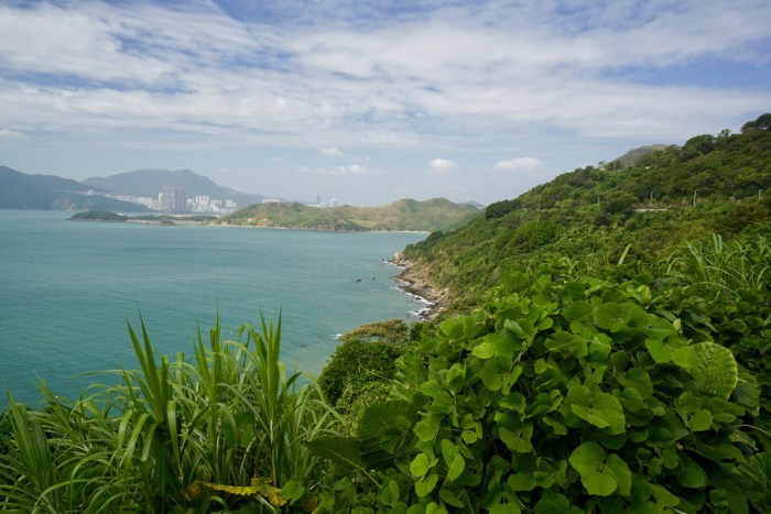 Mein Hotel bietet kein Frühstück an. Und so starte ich den Tag mit einem Bagel und Joghurt bei Starbucks. „Rudolph the red nosed reindeer“ dudelt dort melodisch durch den Raum. Die Saison steht ungeduldig in den Startlöchern. Frisch gestärkt schwinge ich mich mitten im morgendlichen Berufsverkehr in die U-Bahn. In Hang Hau gabelt Anja mich mit dem Wagen auf. Wir machen uns auf den Weg nach Clearwater Bay, wo sie mit ihrer Familie seit vielen Jahren lebt. Strahlender Sonnenschein begleitet uns auf unserer kleinen Wanderung hoch oben über der traumhaft schönen Küste mit den unzähligen vorgelagerten Inselchen. Insgesamt hat Hongkong davon satte 263 an der Zahl zu bieten.