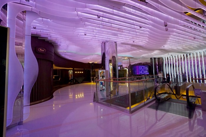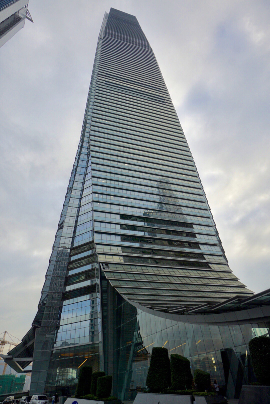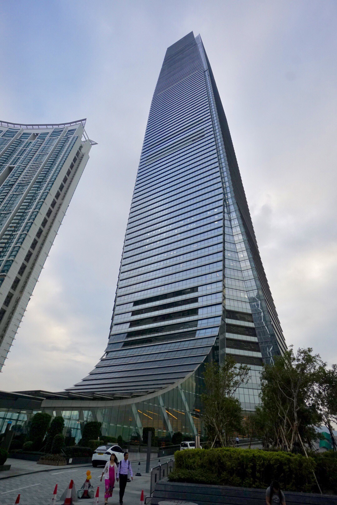 Ein kostenloser Busshuttle bringt mich vom Untergeschoss des Hotel Royal Pacific – mein Dank geht hier an die hilfsbereite Dame an der Rezeption – zum nächsten Objekt der Begierde: das ICC (International Conference Center). Hongkong hat sich hier bautechnisch mal wieder nicht lumpen lassen. Die unbescheidene Hütte sieht aus jeden Blickwinkel anders aus. Das Innenleben ist auch nicht gerade zu verachten.