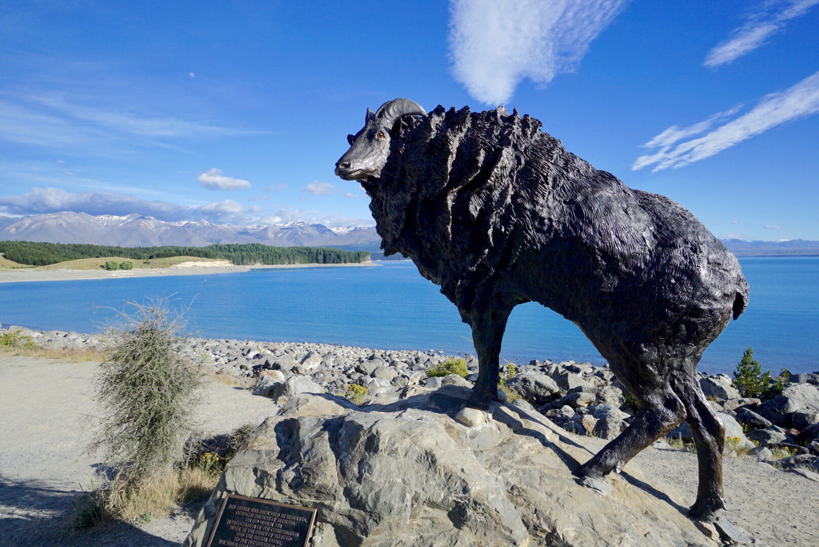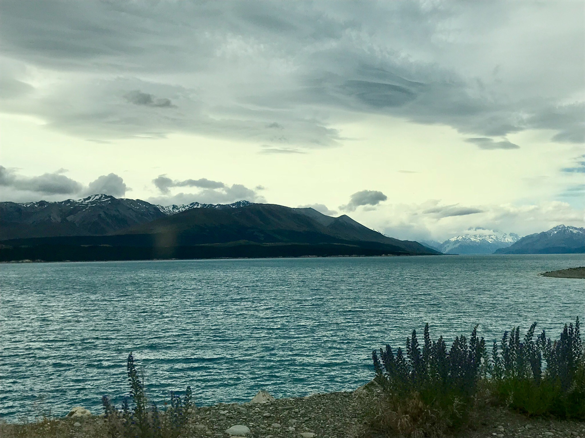 … doch dann schiebt sich der Bus um die Ecke und es geht zurück zum Lake Tekapo. Unterwegs verdüstert sich der Himmel und zaubert wunderbare Wölkchen über dem Lake Pukaki hervor.