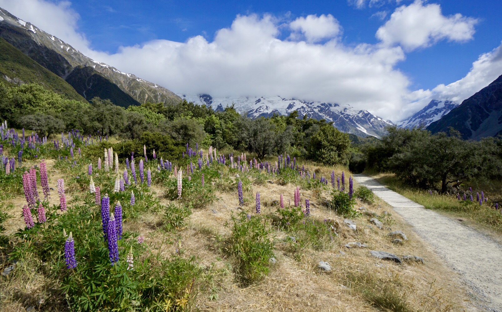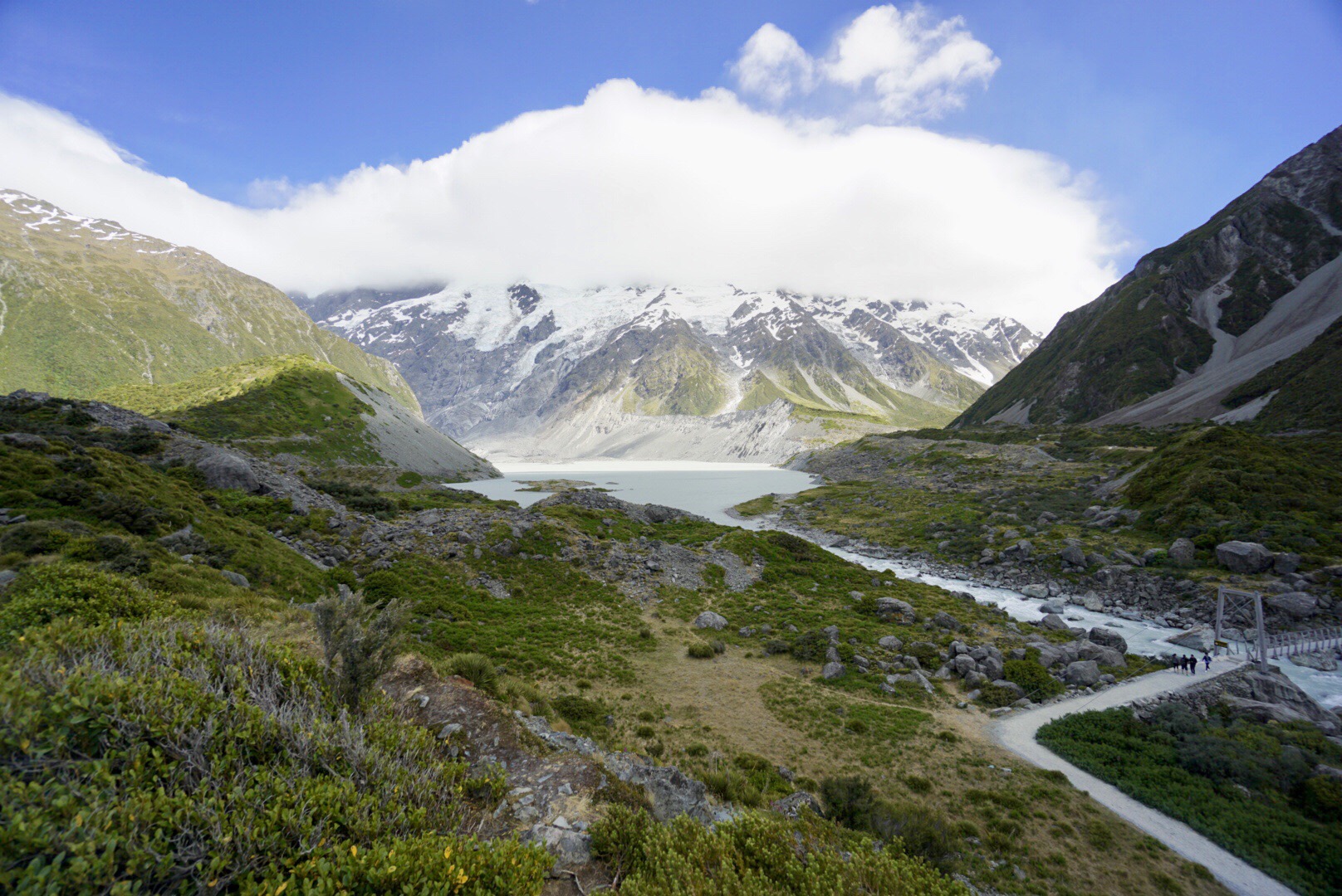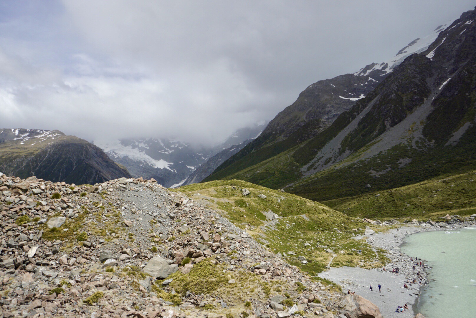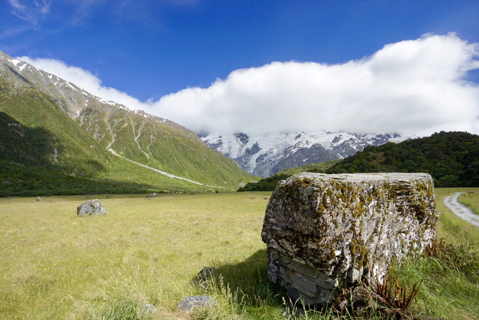„Jetzt wird sie aber echt faul“, höre ich manche von euch lästern. Ich habe mich aber für diesen Weg entschieden, weil er tolle Ausblicke auf die unterschiedlichsten Bergszenarien bietet und am Ende des Hinweges der Mount Cook wartet – sofern er die Güte hat sich zu zeigen. Denn rund 70 % des Jahres hüllt er sich diskret in Wolken ein.