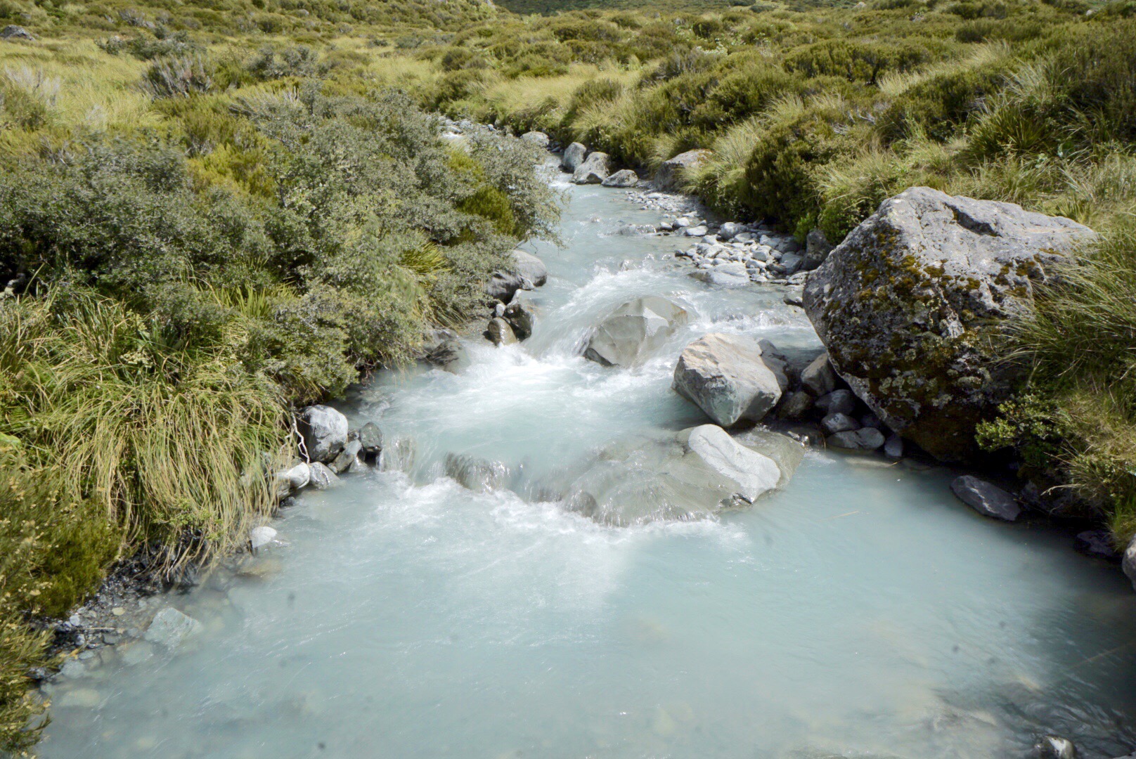 Wasser gibt es natürlich auch jede Menge. Nicht nur in meinen Flaschen, sondern auch im Hooker River und im Mueller (!) Lake.