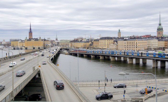 Unten am Slussen angelangt, werfen wir einen kurzen Blick auf den verkehrsreichen Knotenpunkt, …