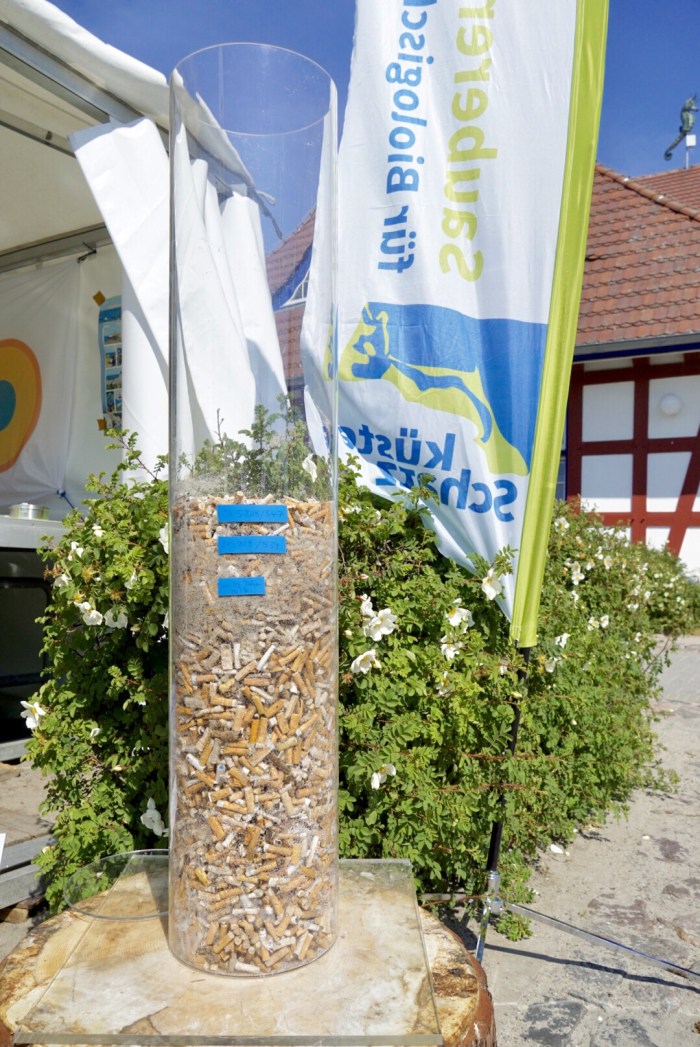 Doch das Umweltfotofestival wäre unvollständig ohne den mahnenden Einsatz des B.U.N.D., dessen engagierte Mitarbeiter täglich von morgens bis abends den Strand vom zurückgelassenen Müll befreien. In etlichen Gesprächen mit Strandbesuchern stellen sie immer wieder mit Erschrecken fest, von welchem Irrglauben manche Zeitgenossen geleitet werden. Nein, Zigarettenkippen verrotten NICHT von selbst, sondern verschmutzen und vergiften Strand und Meer! https://www.bund-mecklenburg-vorpommern.de/service/presse/detail/news/ergebnis-der-strandmuellaktion-taeglich-500-zigarettenkippen/