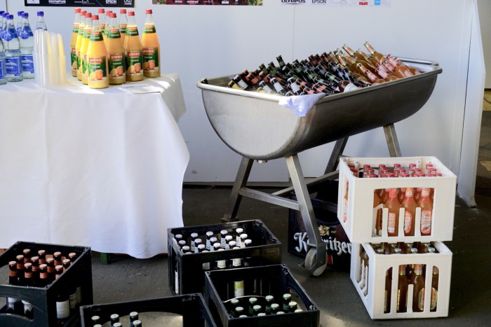 Kaum drinnen in der Halle, geraten wir zufällig in die Vernissage und erfreuen uns neben den erhellenden Erläuterungen zur Ausstellung auch an dem angebotenen kühlen Nass.