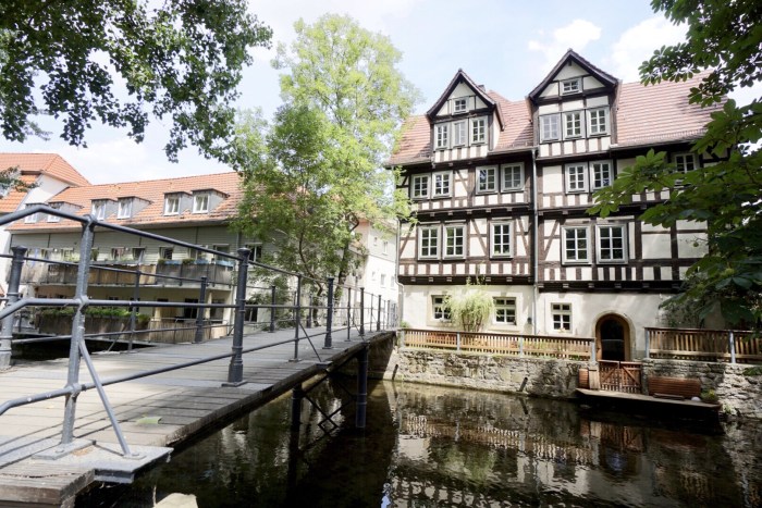 Immer schön im Schatten am allgegenwärtigen Wasser entlang führt mich mein erster Weg zum Augustinerkloster mit seinem gelungenen Mix aus alter und neuer Architektur. Wo Martin Luther einst ein paar Jahre als Mönch lebte, finden wir heute ein Tagungs- und Begegnungszentrum vor.