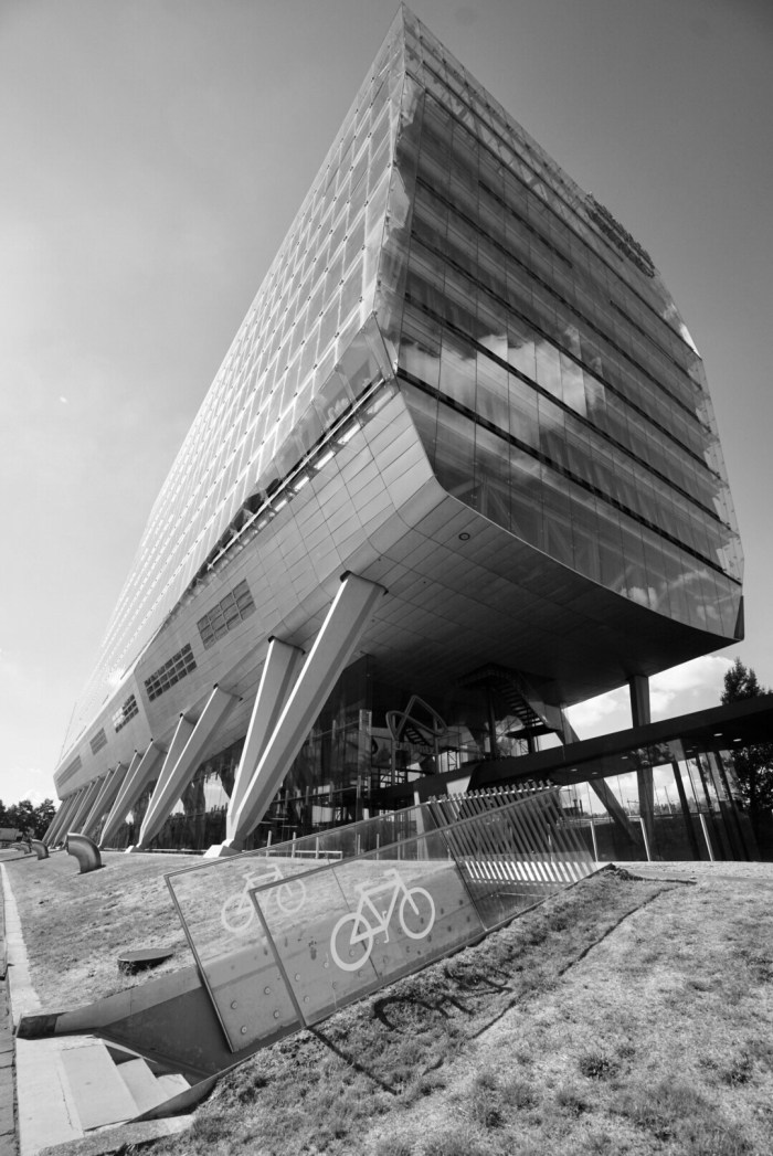 Weiter geht’s. Es kommt, was kommen muss: Auf dem Gelände um ein paar schicke Fortbildungs- und Forschungsinstitute herum heftet sich der Sicherheitsdienst an unsere Fersen. Die Dame ist freundlich, aber unmissverständlich. Fotografieren ist hier unerwünscht. Warum auch immer. Sie empfiehlt uns stattdessen, nach Haarlem oder Alkmaar zu fahren, wenn wir „wirklich schöne Architektur“ fotografieren möchten. Nun denn. Geben wir uns halt mit dem zufrieden, was wir schon im Kasten haben.