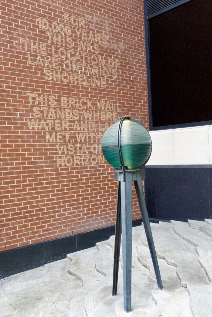 1. Schöne Bilder! Calatrava ist immer gut! Was hat die Inschrift am roten Backsteingebäude auf sich? Wird Lake Ontario allmählich kleiner? Oder wurde Land vom See zurückgewonnen?