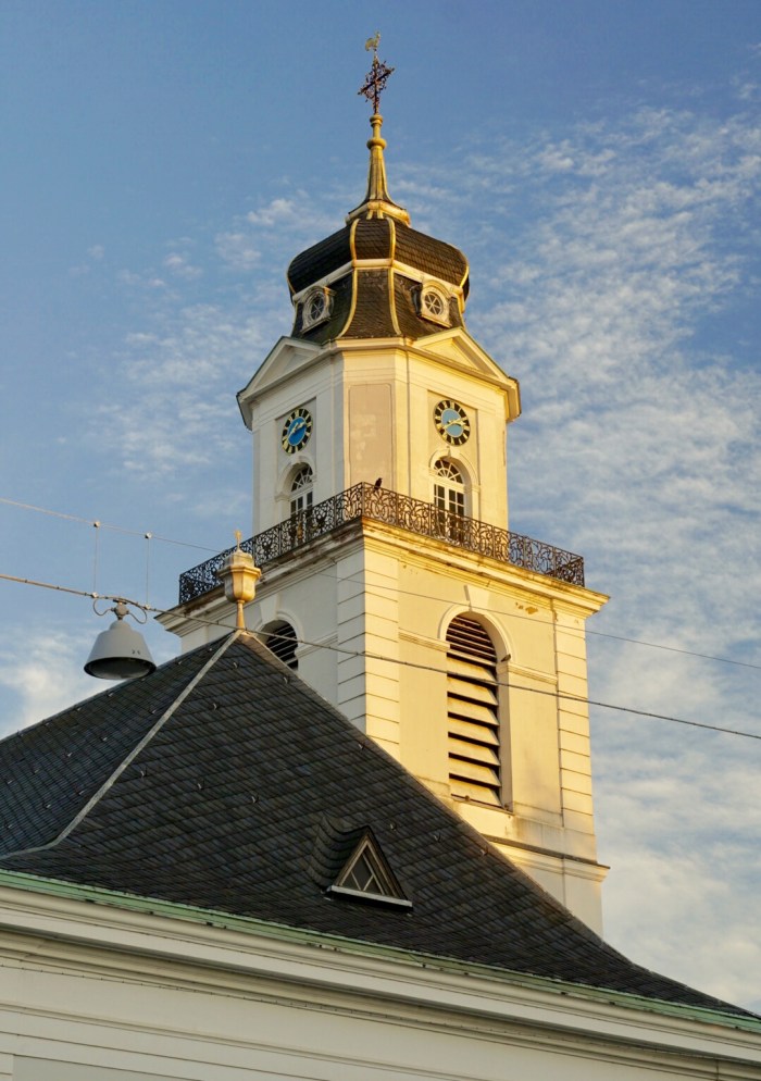 Wir werfen noch einen Blick auf die toll von der Abendsonne ins Licht gesetzte Friedenskirche direkt gegenüber …