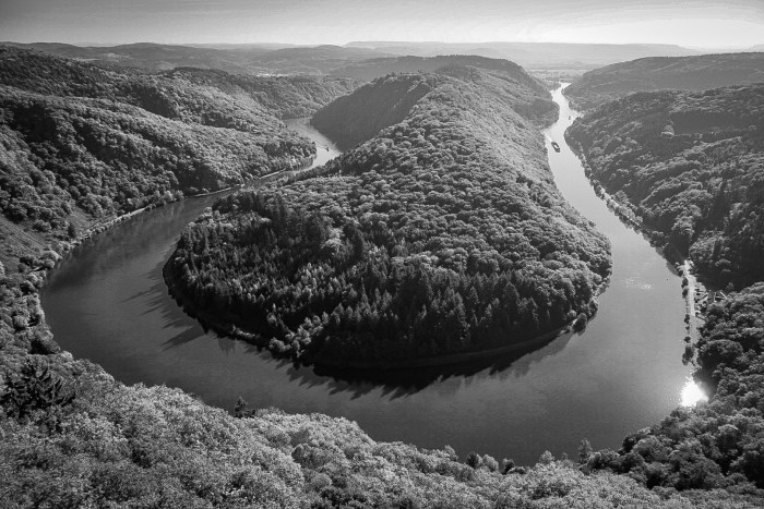 Doch die eigentliche Attraktion ist natürlich der unschlagbare Blick auf den Naturpark Saar-Hunsrück und die Saarschleife. Was biete ich euch nun? Bunt oder schwarz-weiß? Schwierig! Am besten beides. Einmal mit und einmal ohne Schiffchen. Enjoy!
