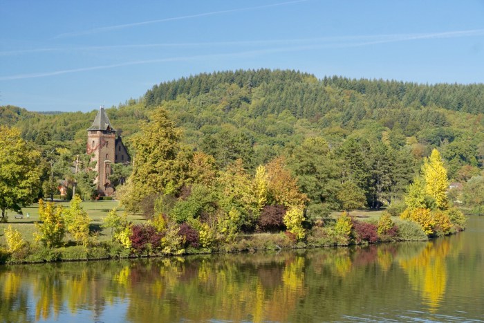 Frisch abgefüllt fahren wir weiter ins vier Kilometer entfernte Mettlach. Kennt ihr nicht? Aber Villeroy & Boch sagt euch schon was, oder? Die sitzen bzw. produzieren da. Wir spazieren durch das hübsche, kleine Städtchen, schauen uns die Schleuse an und genießen die prachtvollen Herbstfarben.