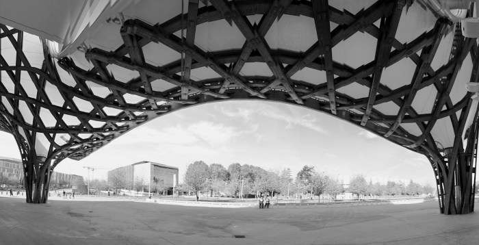 Wir parken unsere Blechkiste in einem Parkhaus in der Nähe des Bahnhofs und wühlen uns wieder an die Oberfläche. Wie immer kommen wir nicht weit, und begutachten erst einmal die diversen Neubauten in der Ecke. Zum Beispiel dieses Exemplar: