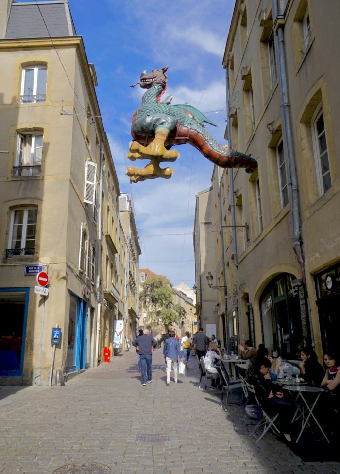 … erreichen wir nach rund 15 Minuten das Zentrum der Altstadt von Metz. Ich war schon so oft hier und bin immer wieder aufs Neue begeistert von diesem charmanten Städtchen (120.000 Einwohner), das geradezu südländisches Flair und Lebensfreude verströmt. Fehlt nur noch das Meer. Aber die Mosel ist ja auch nicht zu verachten.