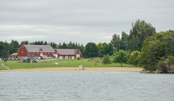 … erfahren wir, dass hier zwischen den 1.000 Islands sehr viele Schiffswracks auf dem Boden des Flusses vor sich hin rotten. Kaum vorstellbar bei der fast spiegelblanken Wasseroberfläche heute! So gelangen wir ohne Titanic-artige Katastrophen unversehrt wieder zurück an Land.